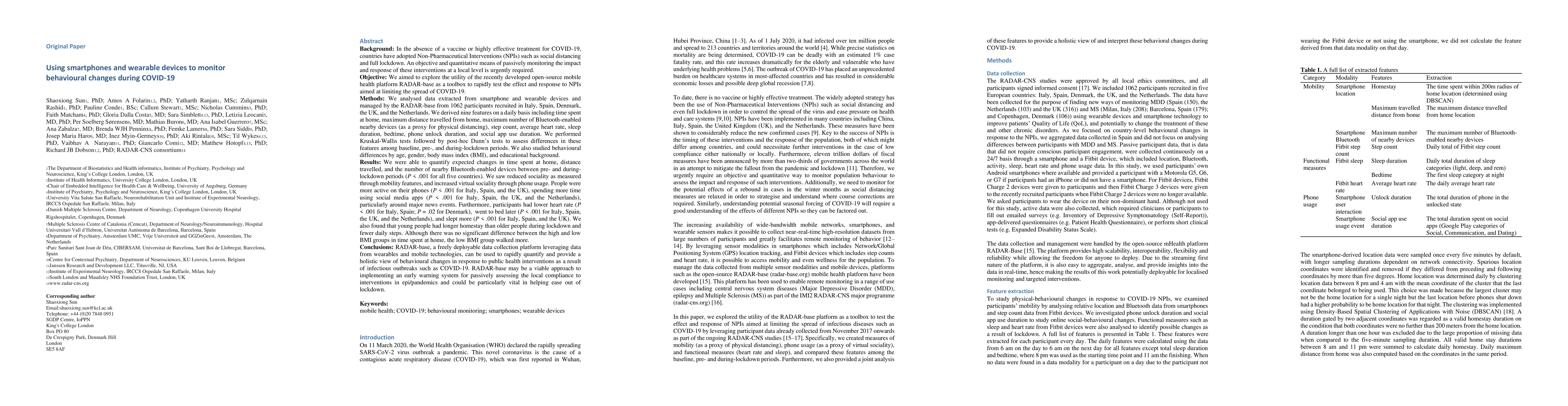 A study using smartphone and wearable device data found that during COVID-19 lockdowns, people reduced social interactions but increased virtual sociality through phone usage, while also changing their daily habits such as sleep patterns and physical activity.