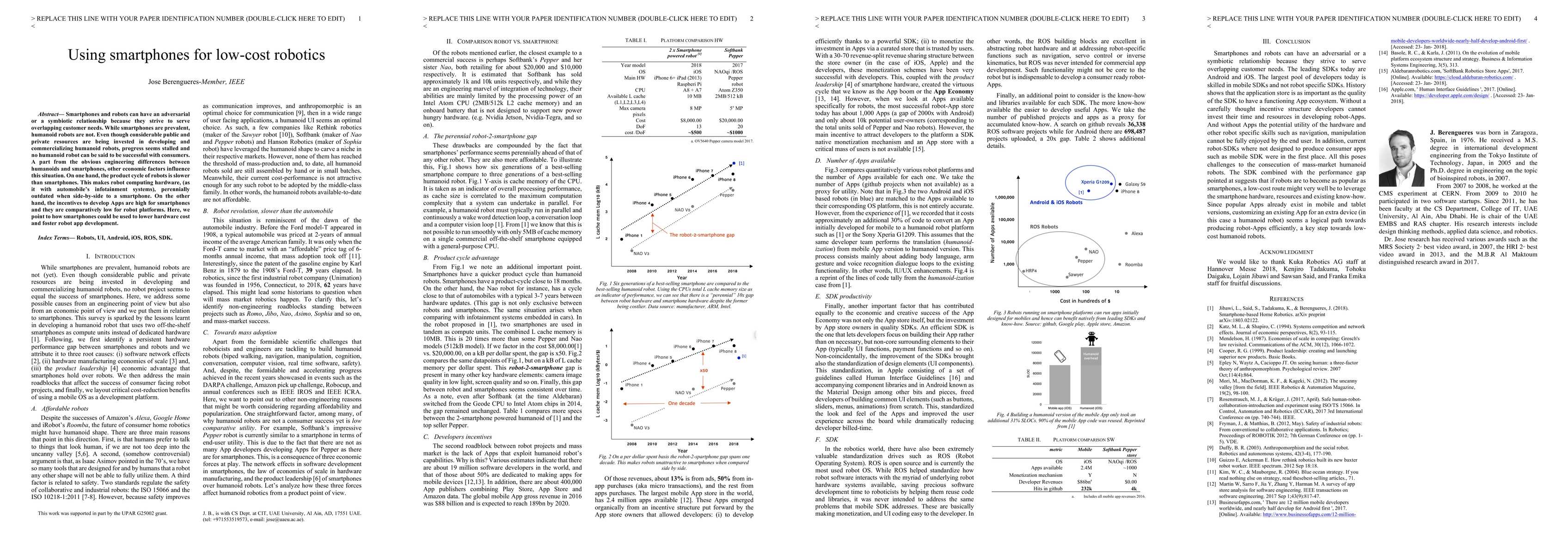 This paper explores leveraging smartphones to reduce the cost of robotics and stimulate app development for robot platforms, addressing the slower product cycle and lower app development incentives for robots compared to smartphones. The synergy between smartphones and robots could potentially revitalize the robotics industry.