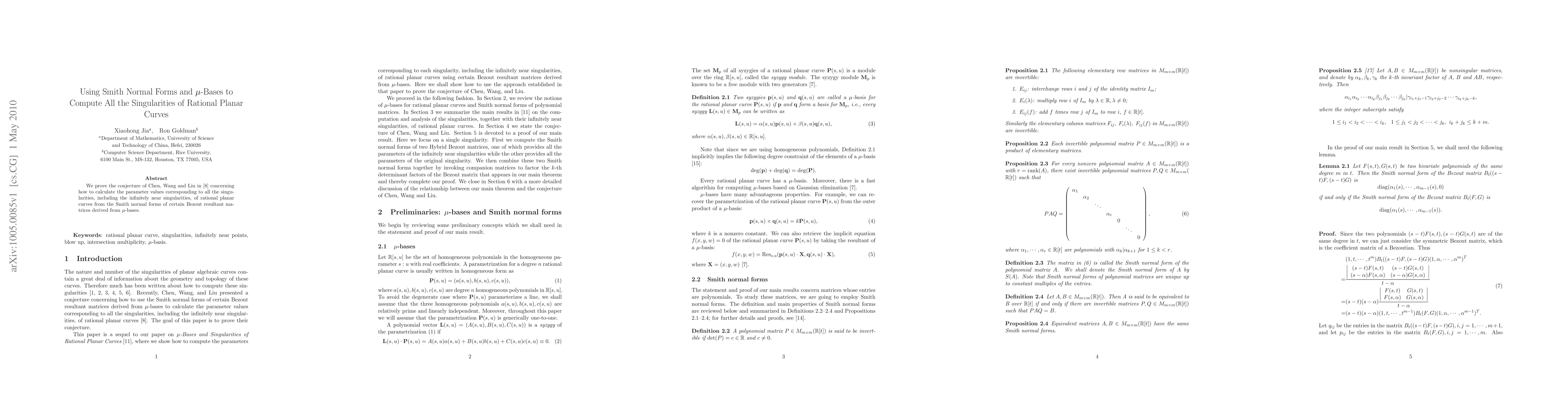 We prove the conjecture of Chen, Wang and Liu in [8] concerning how to calculate the parameter values corresponding to all the singu- larities, including the infinitely near singularities, of rational planar curves from the Smith normal forms of certain Bezout resultant ma- trices derived from mu-bases.