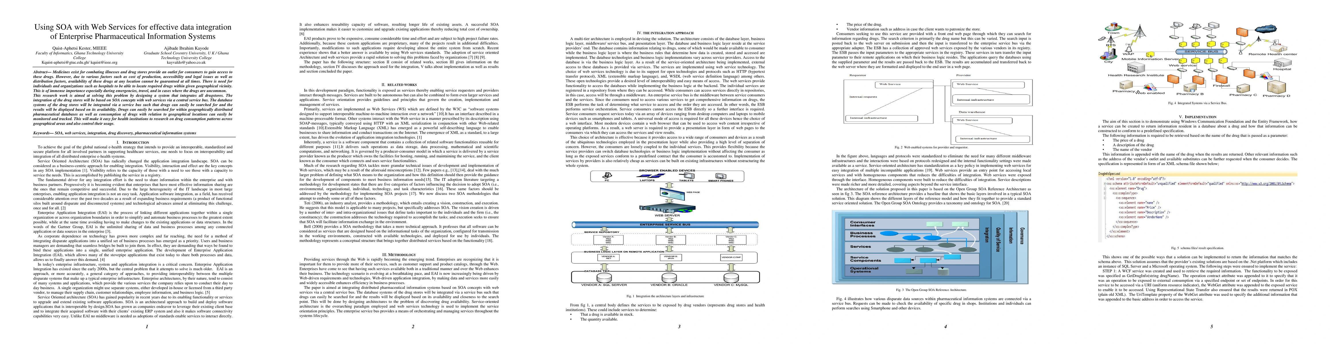 Medicines exist for combating illnesses and drug stores provide an outlet for consumers to gain access to these drugs. However, due to various factors such as cost of production, accessibility and legal issues as well as distribution factors, availability of these drugs at any location cannot be guaranteed at all times. There is need for individuals and organizations such as hospitals to be able to locate required drugs within given geographical vicinity. This is of immense importance especially during emergencies, travel, and in cases where the drugs are uncommon. This research work is aimed at solving this problem by designing a system that integrates all drugstores. The integration of the drug stores will be based on SOA concepts with web services via a central service bus. The database systems of the drug stores will be integrated via a service bus such that drugs can easily be searched for and the results will be displayed based on its availability. Drugs can easily be searched for within geographically distributed pharmaceutical databases as well as consumption of drugs with relation to geographical locations can easily be monitored and tracked. This will make it easy for health institutions to research on drug consumption patterns across geographical areas and also control their usage.