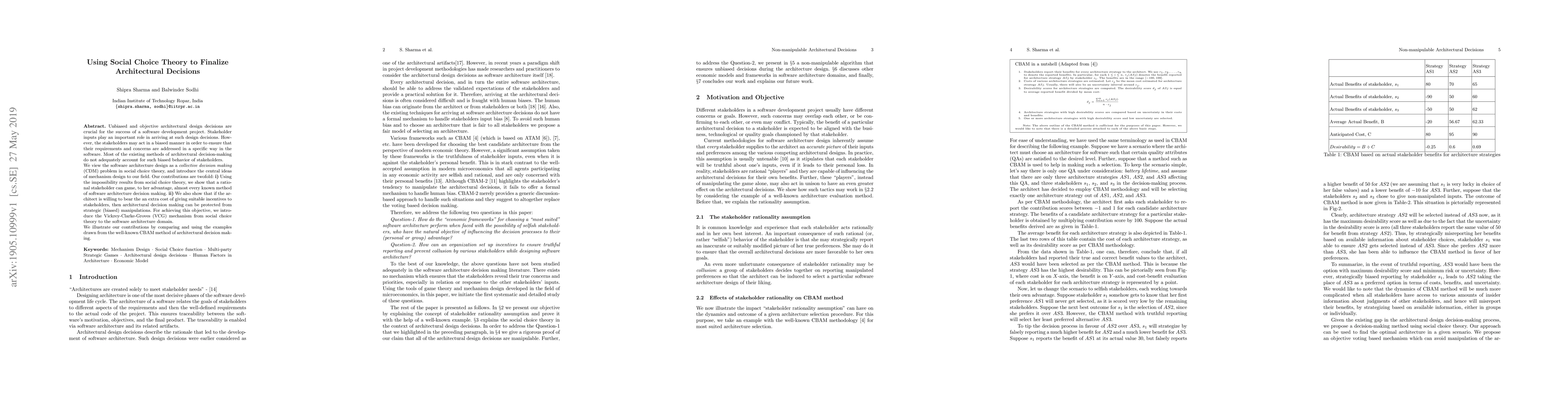 This paper applies social choice theory to address biased stakeholder behavior in architectural decision-making, demonstrating that existing methods are vulnerable to manipulation. It proposes the use of the VCG mechanism to incentivize honest participation and protect against strategic biases.