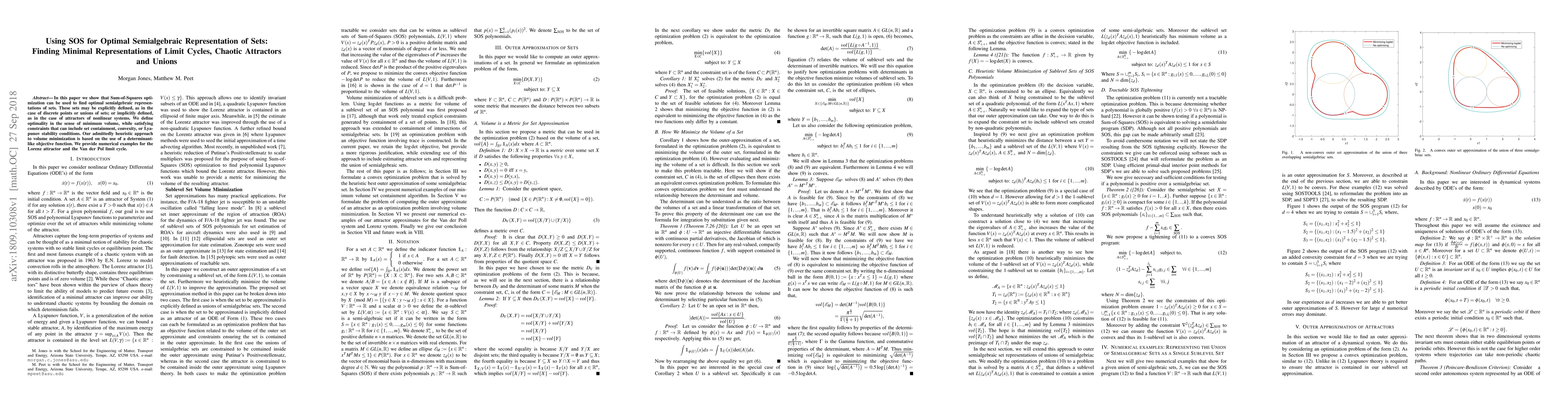 This paper uses Sum-of-Squares optimization to find semialgebraic representations of sets that minimize volume while satisfying constraints, with applications in nonlinear system analysis.