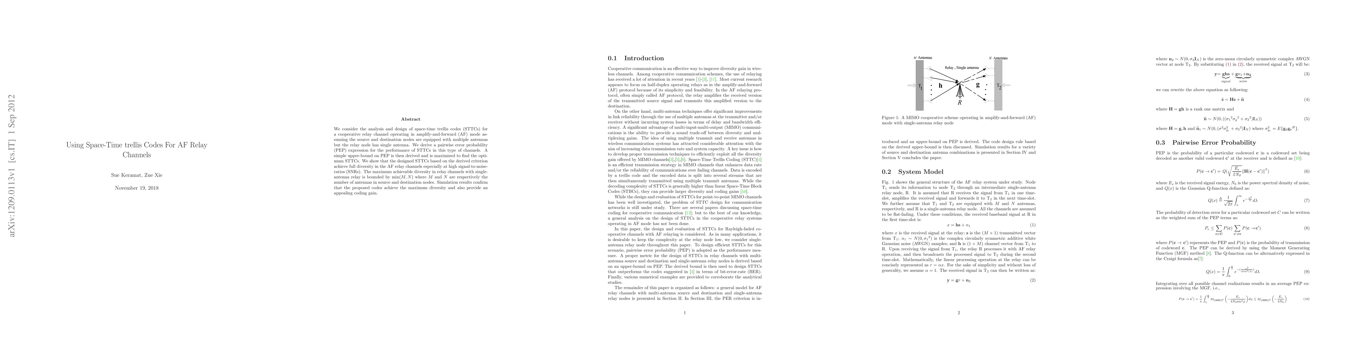 This paper analyzes and designs space-time trellis codes for AF relay channels with multiple-antenna source and destination nodes and a single-antenna relay. The study derives a pairwise error probability expression and an upper-bound, optimizing the codes to achieve full diversity, especially at high SNRs. Simulation results validate the proposed codes' maximum diversity and coding gain.