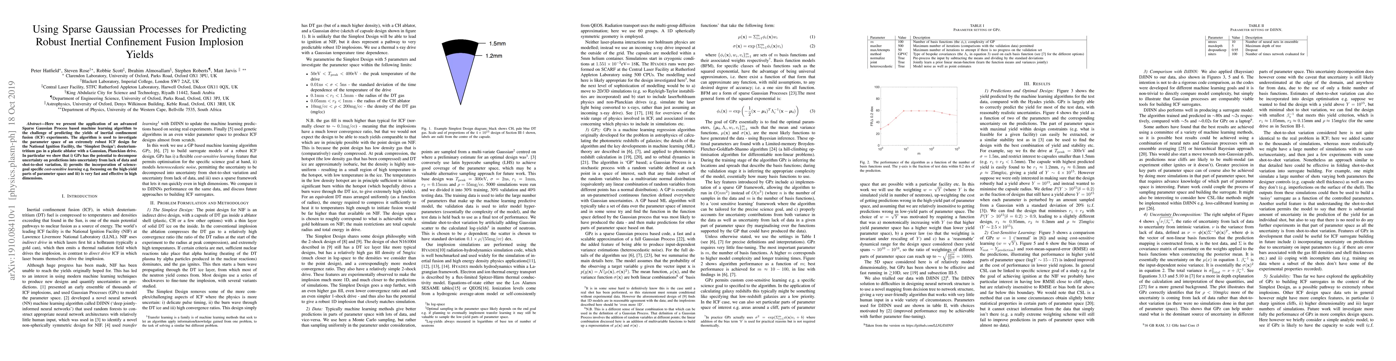 Here we present the application of an advanced Sparse Gaussian Process based machine learning algorithm to the challenge of predicting the yields of inertial confinement fusion (ICF) experiments. The algorithm is used to investigate the parameter space of an extremely robust ICF design for the National Ignition Facility, the `Simplest Design'; deuterium-tritium gas in a plastic ablator with a Gaussian, Planckian drive. In particular we show that i) GPz has the potential to decompose uncertainty on predictions into uncertainty from lack of data and shot-to-shot variation, ii) permits the incorporation of science-goal specific cost-sensitive learning e.g. focussing on the high-yield parts of parameter space and iii) is very fast and effective in high dimensions.