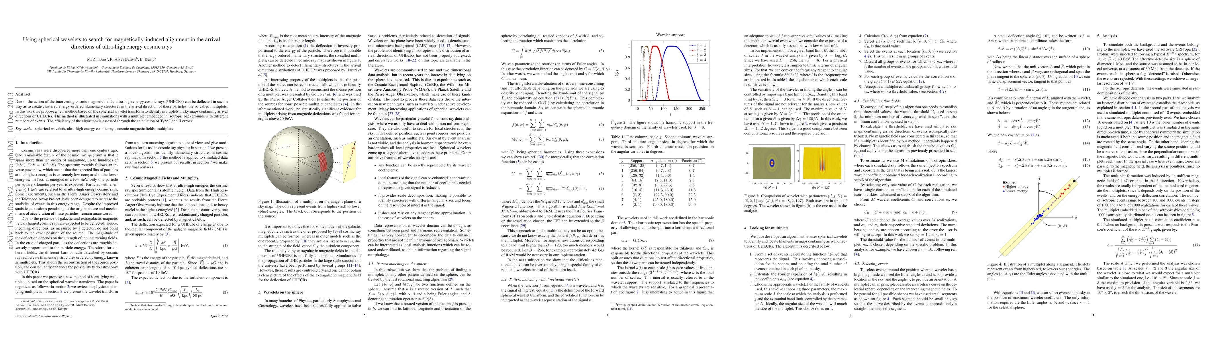 Due to the action of the intervening cosmic magnetic fields, ultra-high energy cosmic rays (UHECRs) can be deflected in such a way as to create clustered energy-ordered filamentary structures in the arrival direction of these particles, the so-called multiplets. In this work we propose a new method based on the spherical wavelet transform to identify multiplets in sky maps containing arrival directions of UHECRs. The method is illustrated in simulations with a multiplet embedded in isotropic backgrounds with different numbers of events. The efficiency of the algorithm is assessed through the calculation of Type I and II errors.