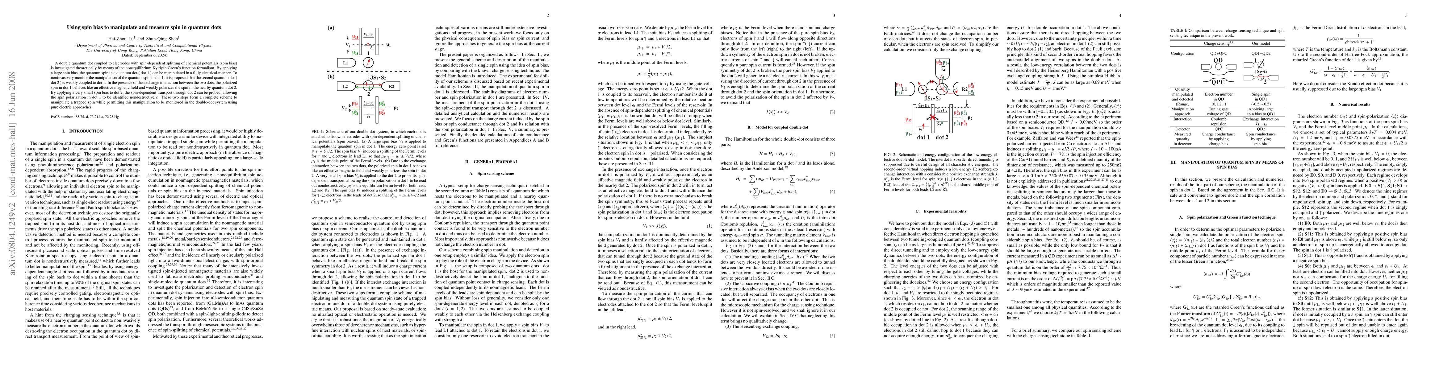 This paper proposes a theoretical method to manipulate and noninvasively measure quantum spin in a quantum dot using spin bias and a double-quantum-dot system. The spin in dot 1 can be fully electrically manipulated, while the spin polarization in dot 1 can be identified nondestructively by probing spin-dependent transport through the weakly coupled dot 2.