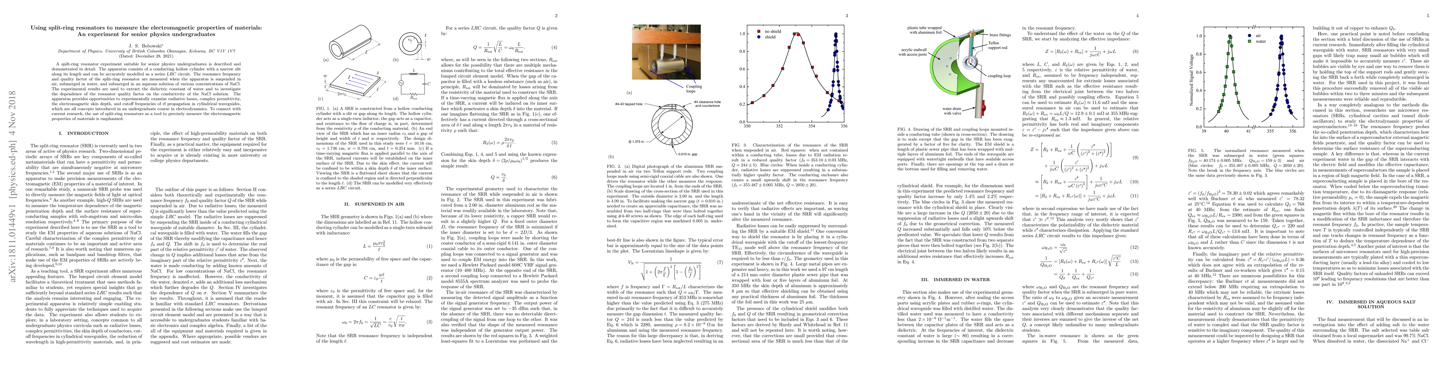 This paper details an experiment using split-ring resonators to measure electromagnetic properties of materials, demonstrating concepts like dielectric constant and skin depth for senior physics undergraduates. The experiment investigates how the resonator's quality factor varies with the conductivity of NaCl solutions.