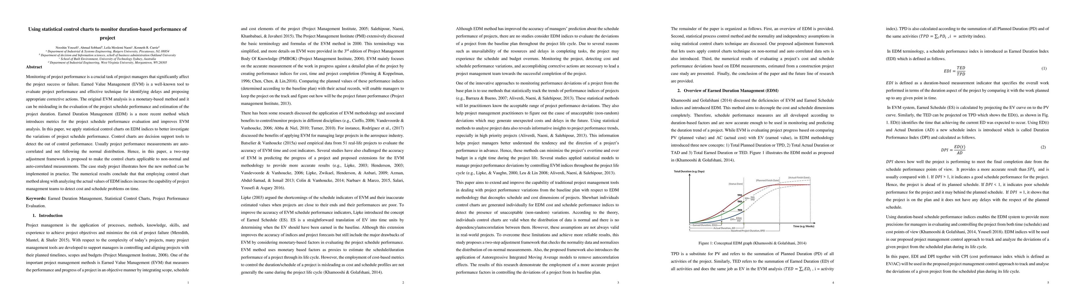 The paper introduces a two-step adjustment framework for applying statistical control charts to non-normal and auto-correlated EDM measurements, enhancing project performance monitoring.