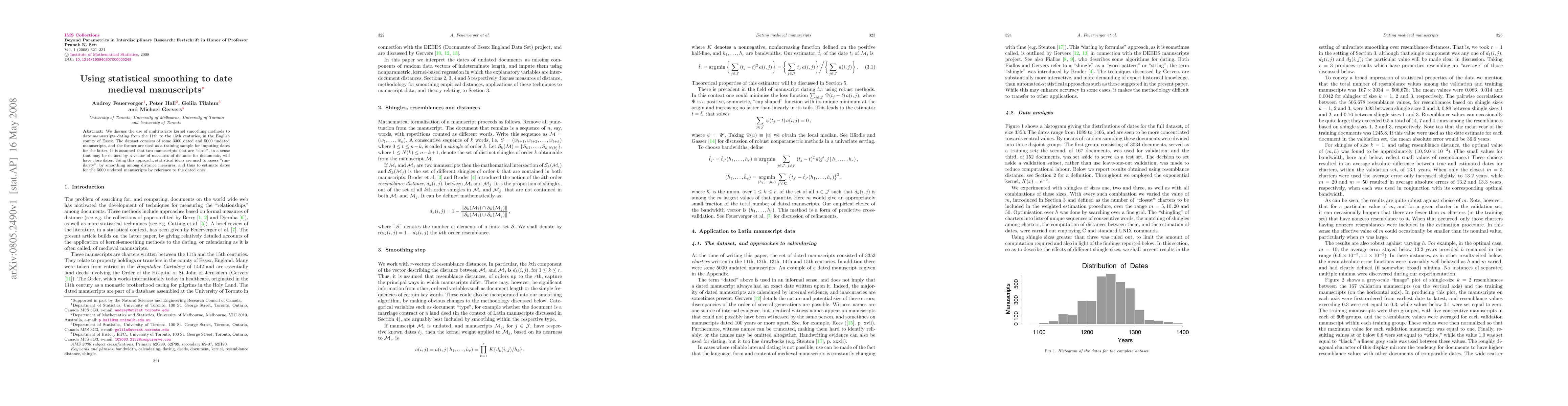 This research demonstrates a novel application of statistical smoothing techniques to date medieval manuscripts, potentially aiding historians and archaeologists in understanding the chronology of document production and dissemination.