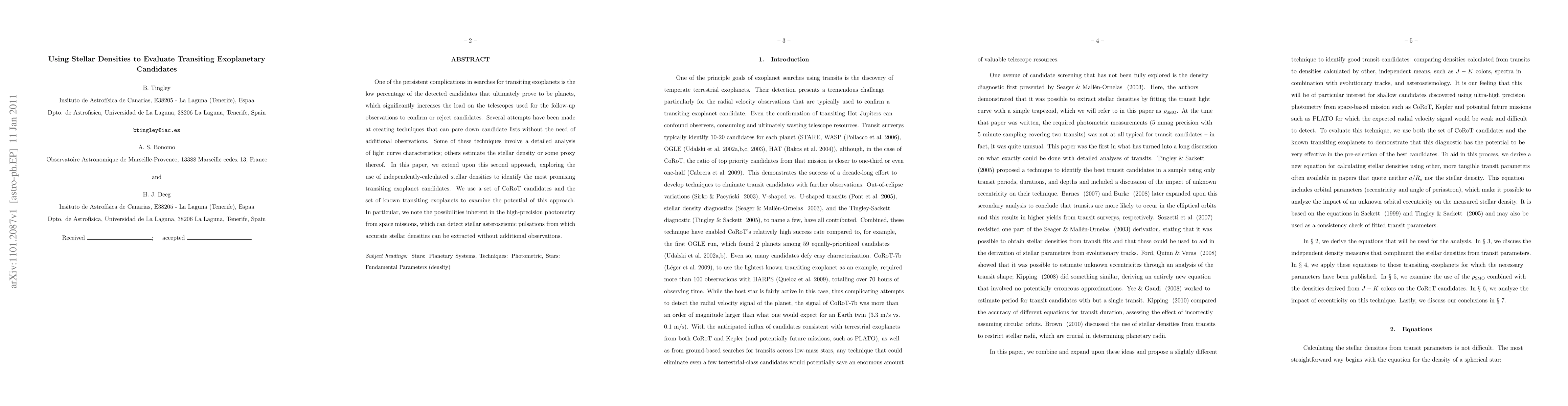 One of the persistent complications in searches for transiting exoplanets is the low percentage of the detected candidates that ultimately prove to be planets, which significantly increases the load on the telescopes used for the follow-up observations to confirm or reject candidates. Several attempts have been made at creating techniques that can pare down candidate lists without the need of additional observations. Some of these techniques involve a detailed analysis of light curve characteristics; others estimate the stellar density or some proxy thereof. In this paper, we extend upon this second approach, exploring the use of independently-calculated stellar densities to identify the most promising transiting exoplanet candidates. We use a set of CoRoT candidates and the set of known transiting exoplanets to examine the potential of this approach. In particular, we note the possibilities inherent in the high-precision photometry from space missions, which can detect stellar asteroseismic pulsations from which accurate stellar densities can be extracted without additional observations.