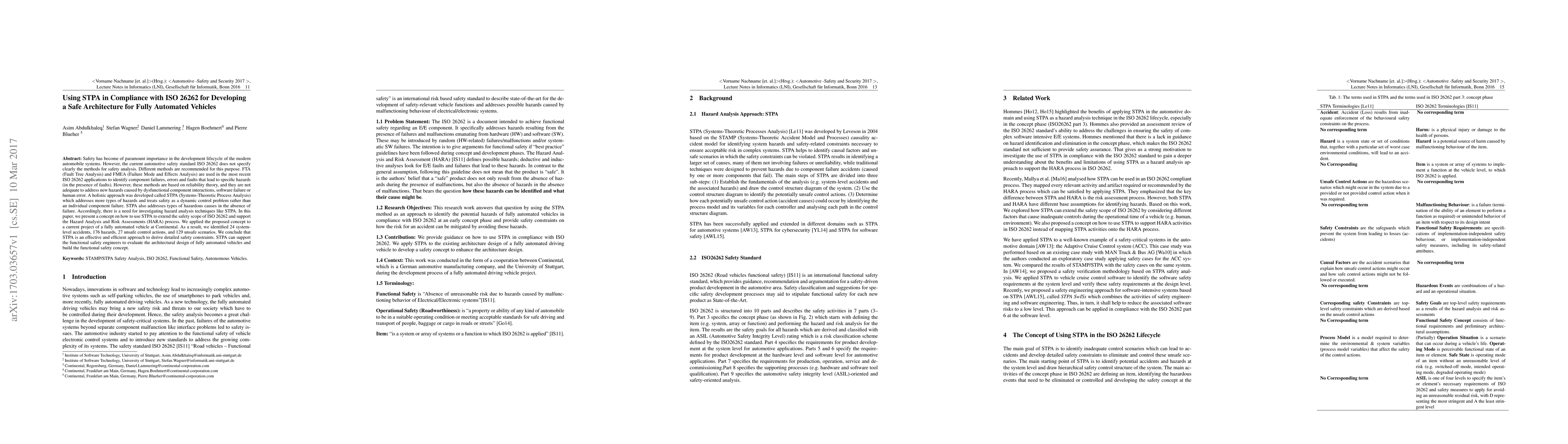 This paper explores the integration of STPA with ISO 26262 to enhance safety analysis for fully automated vehicles. The study demonstrates that STPA effectively identifies system-level hazards and unsafe control actions, leading to the identification of 24 accidents, 176 hazards, 27 unsafe control actions, and 129 unsafe scenarios in a Continental project.