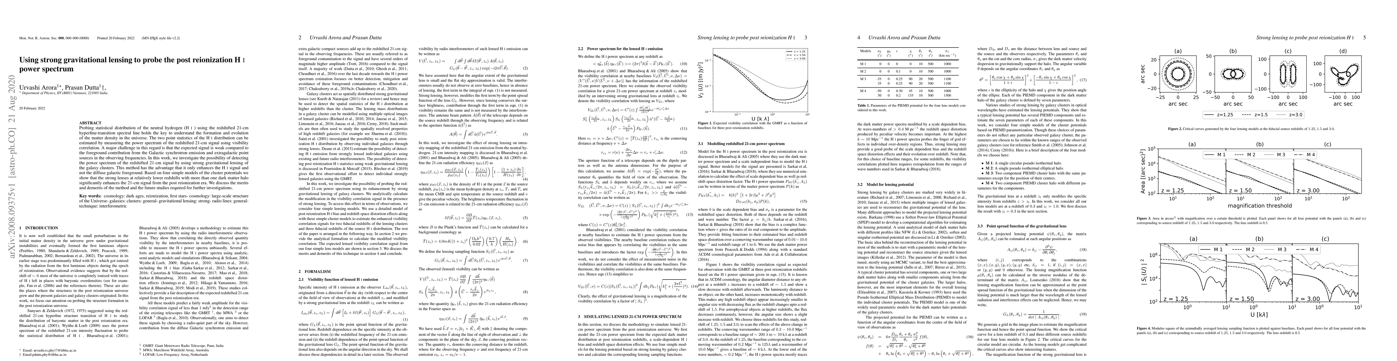Probing statistical distribution of the neutral hydrogen (\HI) using the redshifted 21-cm hyperfine-transition spectral line holds the key to understand the formation and evolution of the matter density in the universe. The two-point statistics of the \HI distribution can be estimated by measuring the power spectrum of the redshifted 21-cm signal using visibility correlation. A major challenge in this regard is that the expected signal is weak compared to the foreground contribution from the Galactic synchrotron emission and extragalactic point sources in the observing frequencies. In this work, we investigate the possibility of detecting the power spectrum of the redshifted 21-cm signal by using strong gravitational lensing of the galaxy clusters. This method has the advantage that it only enhances the \HI signal and not the diffuse galactic foreground. Based on four simple models of the cluster potentials we show that the strong lenses at relatively lower redshifts with more than one dark matter halo significantly enhances the 21-cm signal from the post reionization era. We discuss the merits and demerits of the method and the future studies required for further investigations.