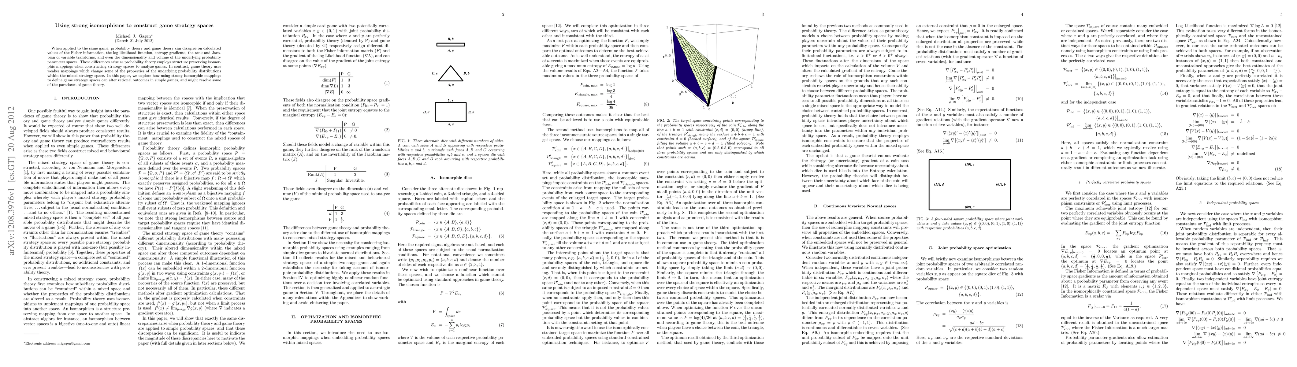 When applied to the same game, probability theory and game theory can disagree on calculated values of the Fisher information, the log likelihood function, entropy gradients, the rank and Jacobian of variable transforms, and even the dimensionality and volume of the underlying probability parameter spaces. These differences arise as probability theory employs structure preserving isomorphic mappings when constructing strategy spaces to analyze games. In contrast, game theory uses weaker mappings which change some of the properties of the underlying probability distributions within the mixed strategy space. In this paper, we explore how using strong isomorphic mappings to define game strategy spaces can alter rational outcomes in simple games, and might resolve some of the paradoxes of game theory.