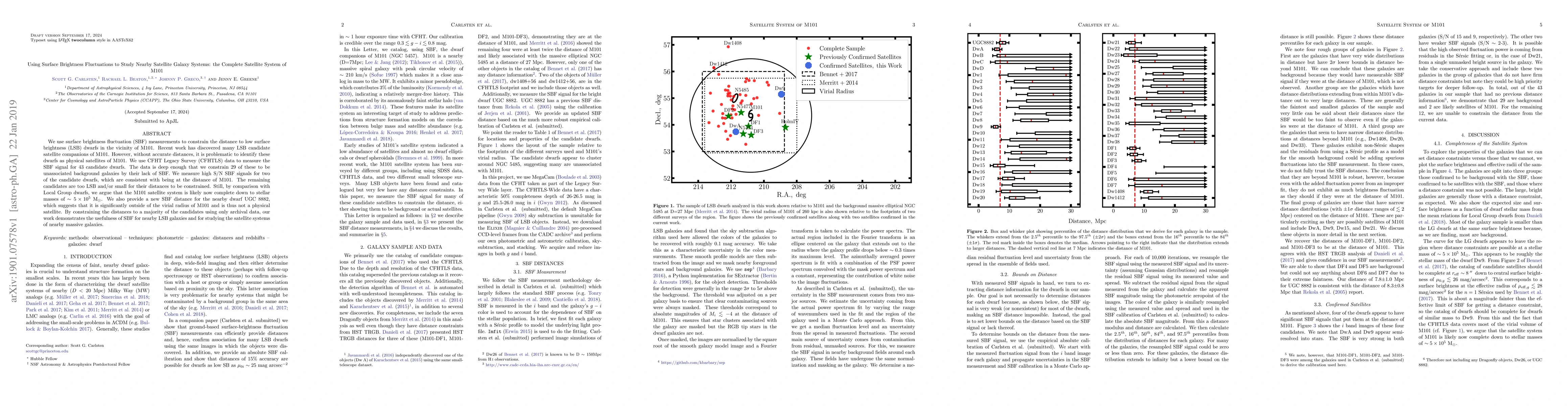 We use surface brightness fluctuation (SBF) measurements to constrain the distance to low surface brightness (LSB) dwarfs in the vicinity of M101. Recent work has discovered many LSB candidate satellite companions of M101. However, without accurate distances, it is problematic to identify these dwarfs as physical satellites of M101. We use CFHT Legacy Survey (CFHTLS) data to measure the SBF signal for 43 candidate dwarfs. The data is deep enough that we constrain 29 of these to be unassociated background galaxies by their lack of SBF. We measure high S/N SBF signals for two of the candidate dwarfs, which are consistent with being at the distance of M101. The remaining candidates are too LSB and/or small for their distances to be constrained. Still, by comparison with Local Group dwarfs, we argue that the M101 satellite system is likely now complete down to stellar masses of $\sim5\times10^5$ M$_\odot$. We also provide a new SBF distance for the nearby dwarf UGC 8882, which suggests that it is significantly outside of the virial radius of M101 and is thus not a physical satellite. By constraining the distances to a majority of the candidates using only archival data, our work demonstrates the usefulness of SBF for nearby LSB galaxies and for studying the satellite systems of nearby massive galaxies.