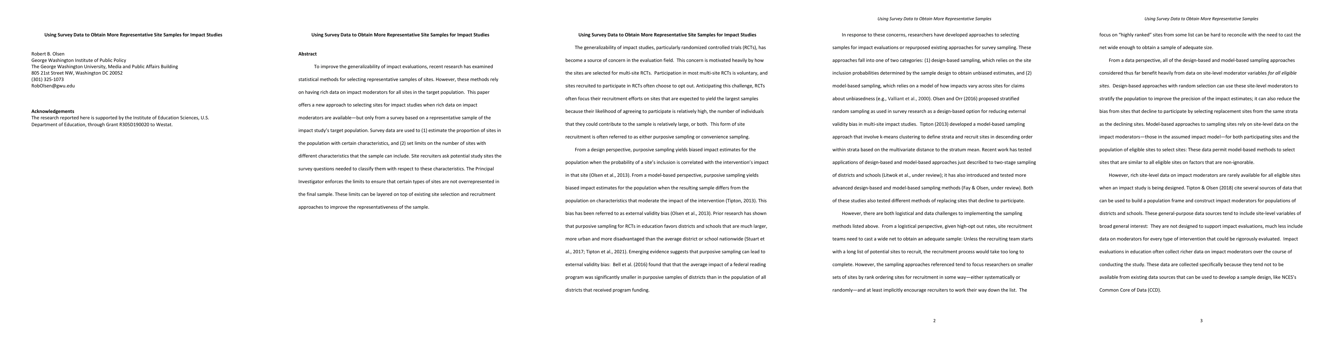 This paper proposes a new method for selecting representative site samples for impact studies using survey data, estimating site characteristics and setting limits to avoid overrepresentation of certain types of sites, thereby enhancing the generalizability of impact evaluations.