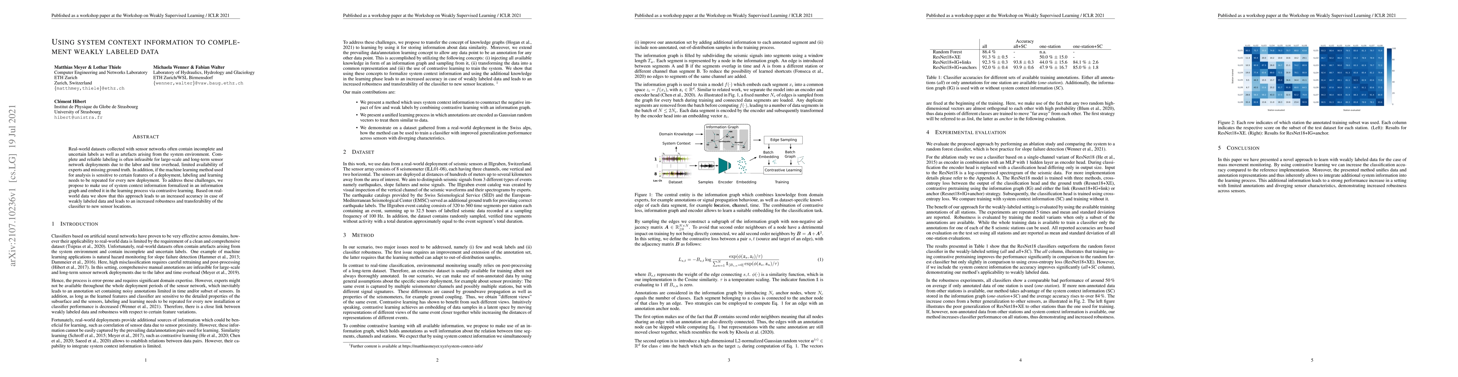 Real-world datasets collected with sensor networks often contain incomplete and uncertain labels as well as artefacts arising from the system environment. Complete and reliable labeling is often infeasible for large-scale and long-term sensor network deployments due to the labor and time overhead, limited availability of experts and missing ground truth. In addition, if the machine learning method used for analysis is sensitive to certain features of a deployment, labeling and learning needs to be repeated for every new deployment. To address these challenges, we propose to make use of system context information formalized in an information graph and embed it in the learning process via contrastive learning. Based on real-world data we show that this approach leads to an increased accuracy in case of weakly labeled data and leads to an increased robustness and transferability of the classifier to new sensor locations.
