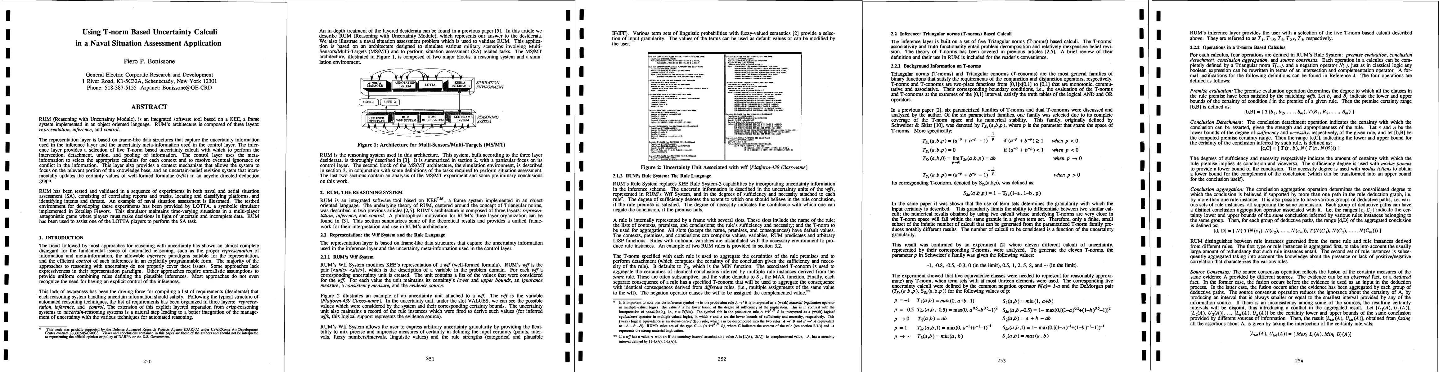 RUM (Reasoning with Uncertainty Module), is an integrated software tool based on a KEE, a frame system implemented in an object oriented language. RUM's architecture is composed of three layers: representation, inference, and control. The representation layer is based on frame-like data structures that capture the uncertainty information used in the inference layer and the uncertainty meta-information used in the control layer. The inference layer provides a selection of five T-norm based uncertainty calculi with which to perform the intersection, detachment, union, and pooling of information. The control layer uses the meta-information to select the appropriate calculus for each context and to resolve eventual ignorance or conflict in the information. This layer also provides a context mechanism that allows the system to focus on the relevant portion of the knowledge base, and an uncertain-belief revision system that incrementally updates the certainty values of well-formed formulae (wffs) in an acyclic directed deduction graph. RUM has been tested and validated in a sequence of experiments in both naval and aerial situation assessment (SA), consisting of correlating reports and tracks, locating and classifying platforms, and identifying intents and threats. An example of naval situation assessment is illustrated. The testbed environment for developing these experiments has been provided by LOTTA, a symbolic simulator implemented in Flavors. This simulator maintains time-varying situations in a multi-player antagonistic game where players must make decisions in light of uncertain and incomplete data. RUM has been used to assist one of the LOTTA players to perform the SA task.