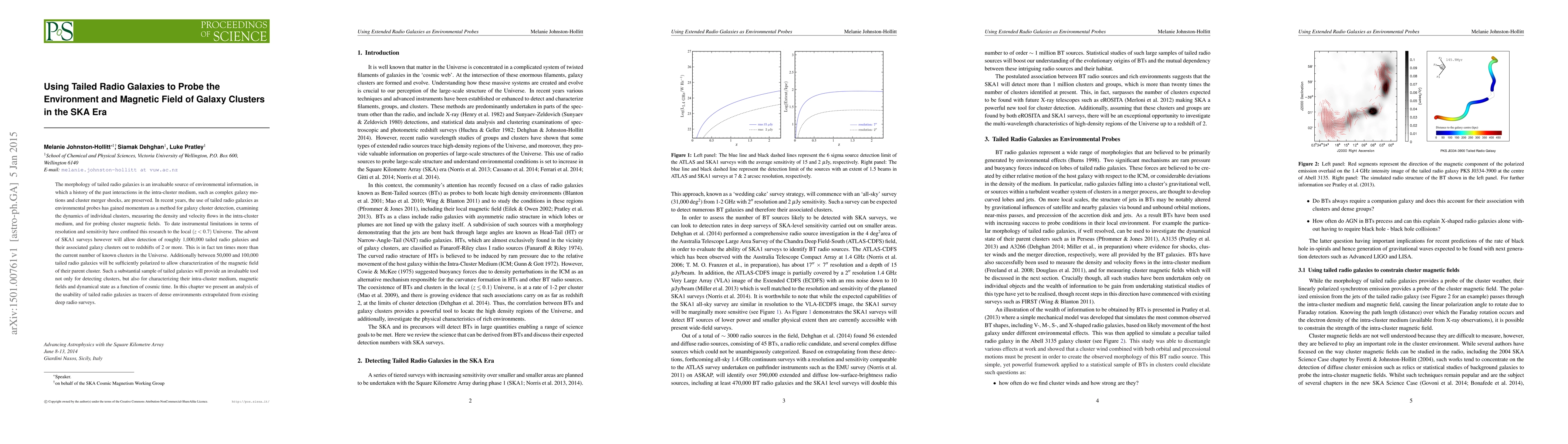 This paper explores the use of tailed radio galaxies as probes to study the environment, dynamics, and magnetic fields of galaxy clusters, especially in the era of the upcoming SKA1 surveys. The study highlights the potential of these galaxies to detect and characterize clusters across vast cosmic distances, offering insights into the intra-cluster medium and magnetic fields.