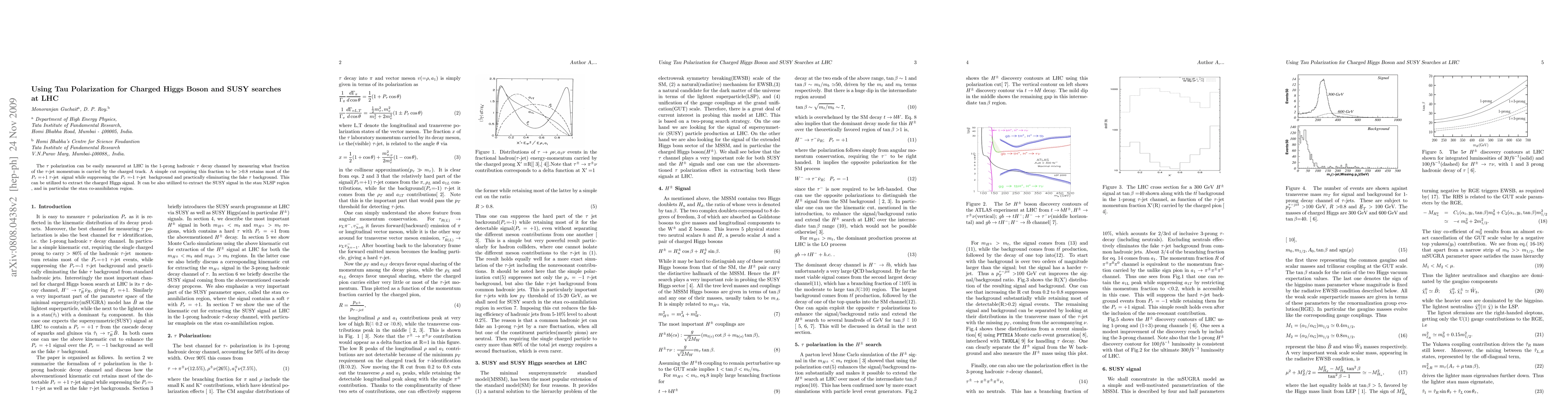 This paper explores the use of $\tau$ polarization in the 1-prong hadronic decay channel at the LHC to identify charged Higgs bosons and supersymmetric signals, particularly focusing on the stau next-to-lightest supersymmetric particle (NLSP) and co-annihilation regions. A simple cut on the $\tau$-jet momentum fraction effectively retains the signal while suppressing background noise.