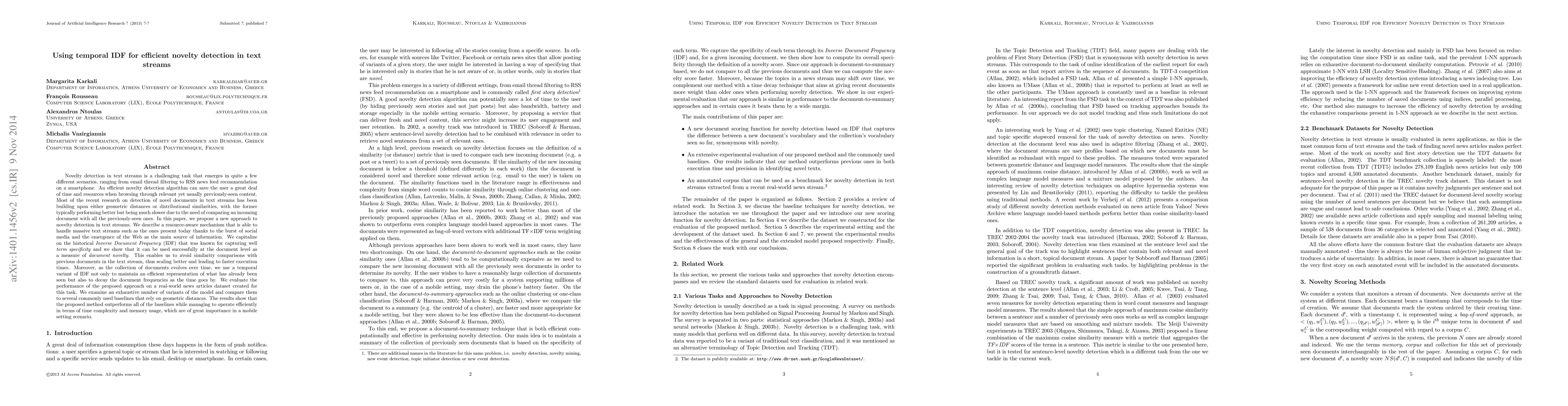 Researchers propose a novel approach to novelty detection in text streams using temporal IDF, which improves efficiency and scalability compared to existing methods.