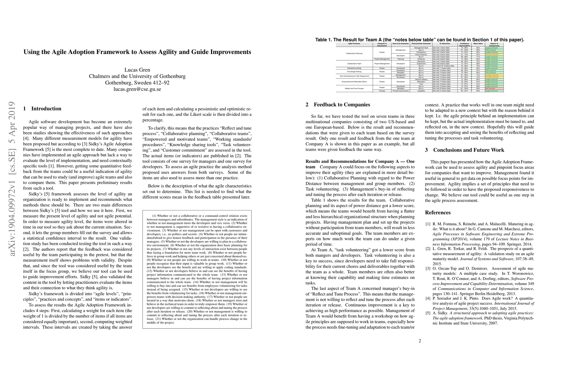 This paper introduces the Agile Adoption Framework to evaluate organizational agility and identify improvement areas. Management finds it valuable for guiding their agile transformation efforts and assessing potential focus points for enhancement.