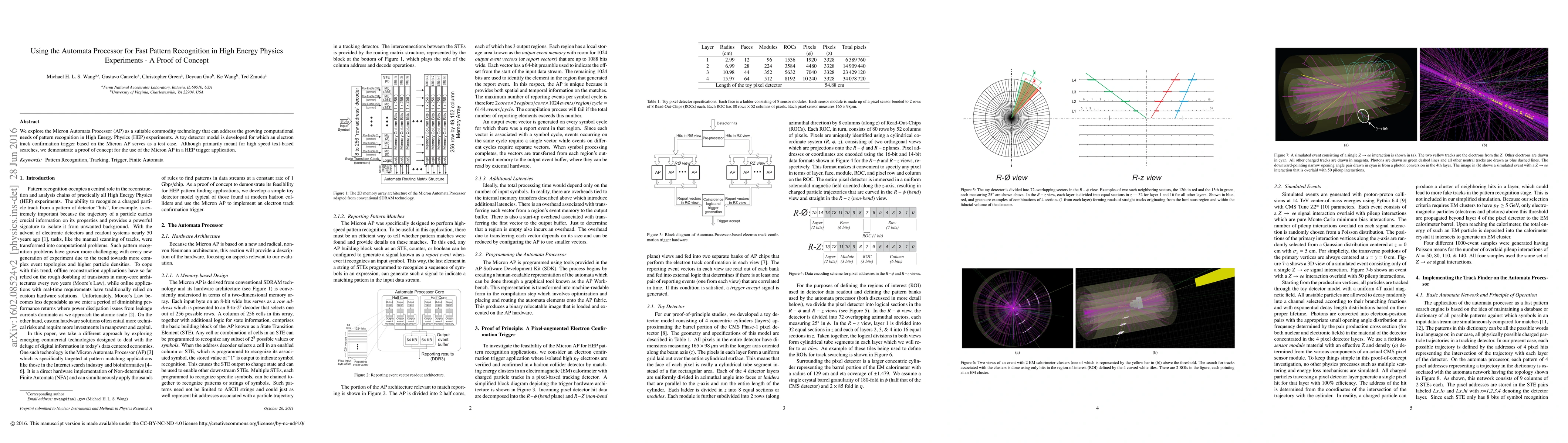The paper presents an innovative approach to using the Micron Automata Processor for fast pattern recognition in HEP, specifically for an electron track confirmation trigger.