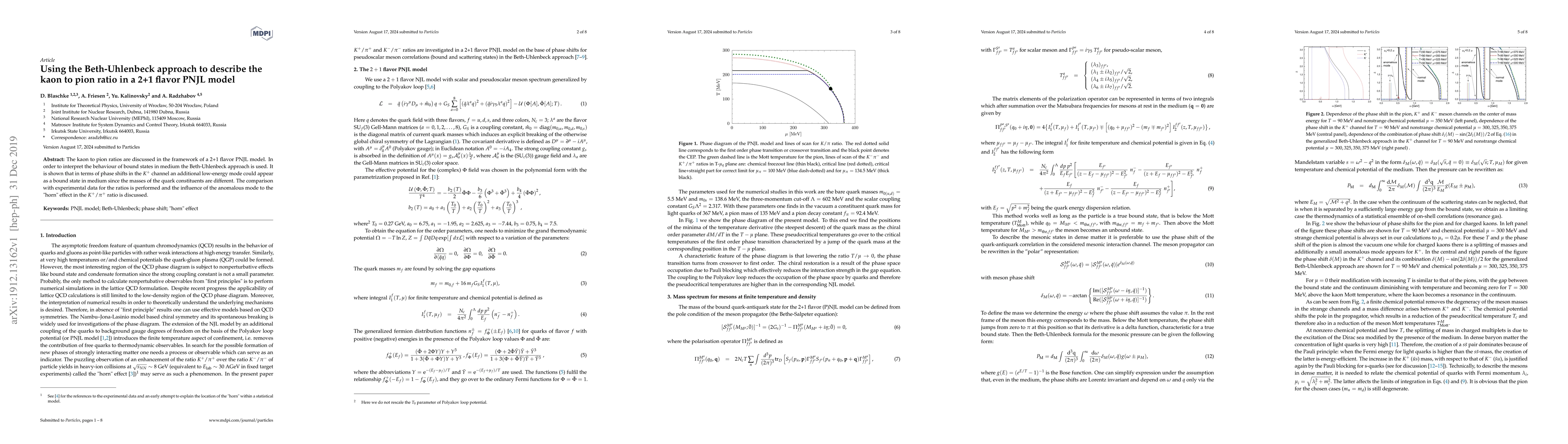 The kaon to pion ratios are discussed in the framework of a 2+1 flavor PNJL model. In order to interpret the behaviour of bound states in medium the Beth-Uhlenbeck approach is used. It is shown that in terms of phase shifts in the K+ channel an additional low-energy mode could appear as a bound state in medium since the masses of the quark constituents are different. The comparison with experimental data for the ratios is performed and the influence of the anomalous mode to the "horn" effect in the K+/pi+ ratio is discussed.