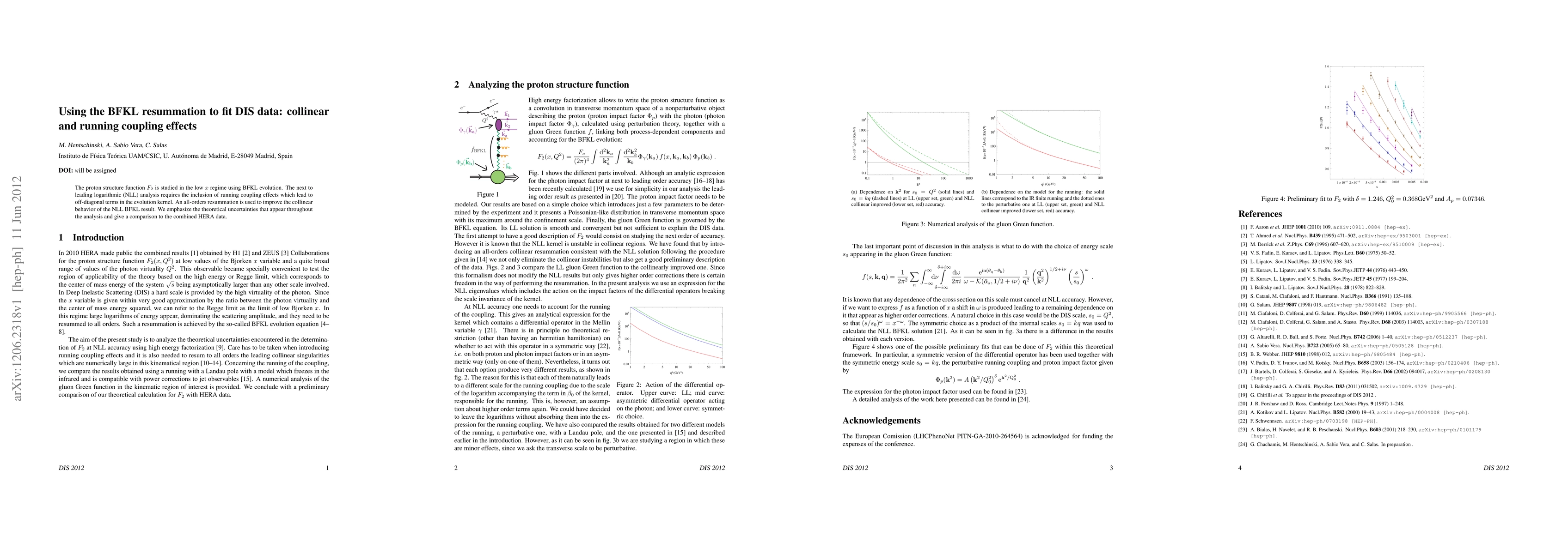 This paper investigates the proton structure function F2 in the low x regime using the BFKL resummation, incorporating next to leading logarithmic (NLL) analysis and running coupling effects. The study highlights theoretical uncertainties and compares the results with combined HERA data.
