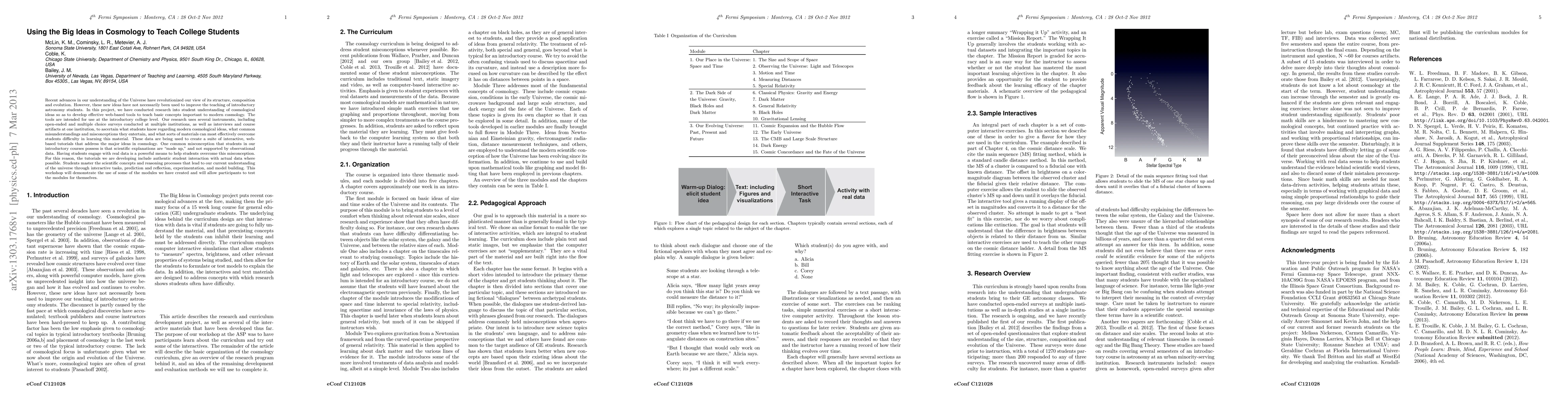 Recent advances in our understanding of the Universe have revolutionized our view of its structure, composition and evolution. However, these new ideas have not necessarily been used to improve the teaching of introductory astronomy students. In this project, we have conducted research into student understanding of cosmological ideas so as to develop effective web-based tools to teach basic concepts important to modern cosmology. The tools are intended for use at the introductory college level. Our research uses several instruments, including open-ended and multiple choice surveys conducted at multiple institutions, as well as interviews and course artifacts at one institution, to ascertain what students know regarding modern cosmological ideas, what common misunderstandings and misconceptions they entertain, and what sorts of materials can most effectively overcome student difficulties in learning this material. These data are being used to create a suite of interactive, web-based tutorials that address the major ideas in cosmology using real data. Having students engage with real data is a powerful means to help students overcome certain misconceptions. Students master the scientific concepts and reasoning processes that lead to our current understanding of the universe through interactive tasks, prediction and reflection, experimentation, and model building.