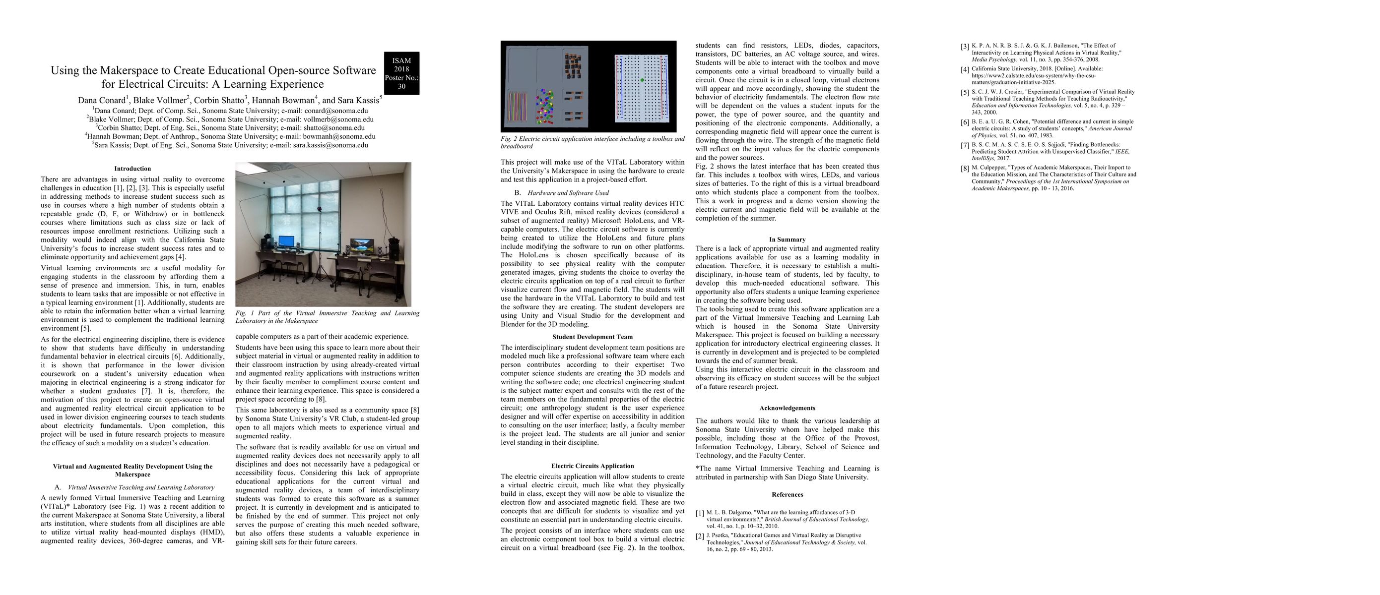 This paper details the development of an open-source augmented reality application for teaching electrical circuit fundamentals in engineering courses, created by an interdisciplinary student team. The software aims to enhance accessibility and usability through multimodal features, and is now available for use at Sonoma State University's VITaL Laboratory.