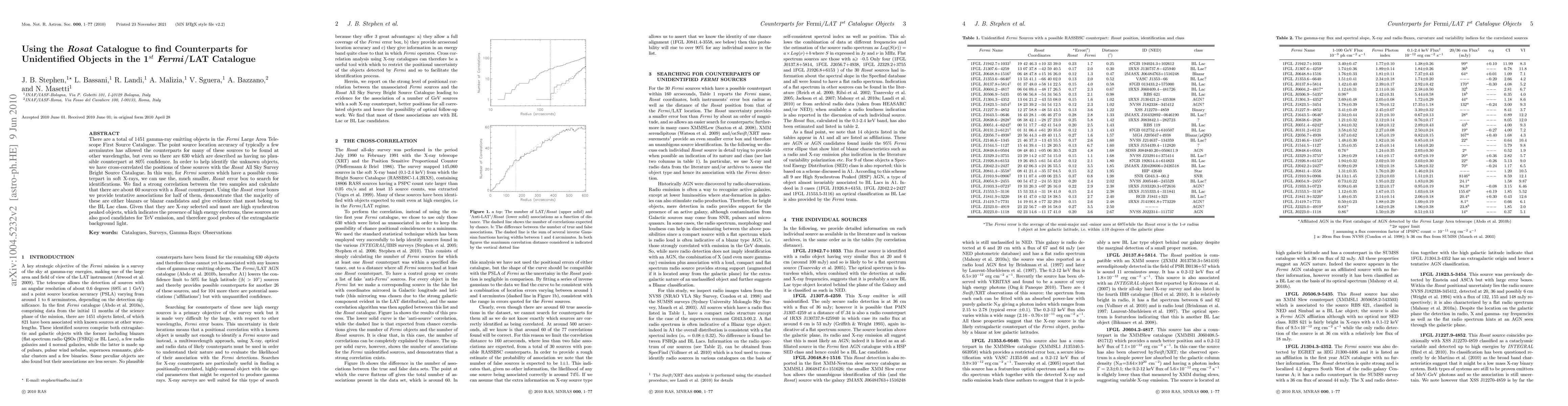 There are a total of 1451 gamma-ray emitting objects in the Fermi Large Area Telescope First Source Catalogue. The point source location accuracy of typically a few arcminutes has allowed the counterparts for many of these sources to be found at other wavelengths, but even so there are 630 which are described as having no plausible counterpart at 80% confidence. In order to help identify the unknown objects, we have cross-correlated the positions of these sources with the Rosat All Sky Survey Bright Source Catalogue. In this way, for Fermi sources which have a possible counterpart in soft X-rays, we can use the, much smaller, Rosat error box to search for identifications. We find a strong correlation between the two samples and calculate that there are about 60 sources with a Rosat counterpart. Using the Rosat error boxes we provide tentative associations for half of them, demonstrate that the majority of these are either blazars or blazar candidates and give evidence that most belong to the BL Lac class. Given that they are X-ray selected and most are high synchrotron peaked objects, which indicates the presence of high energy electrons, these sources are also good candidates for TeV emission, and therefore good probes of the extragalactic background light.