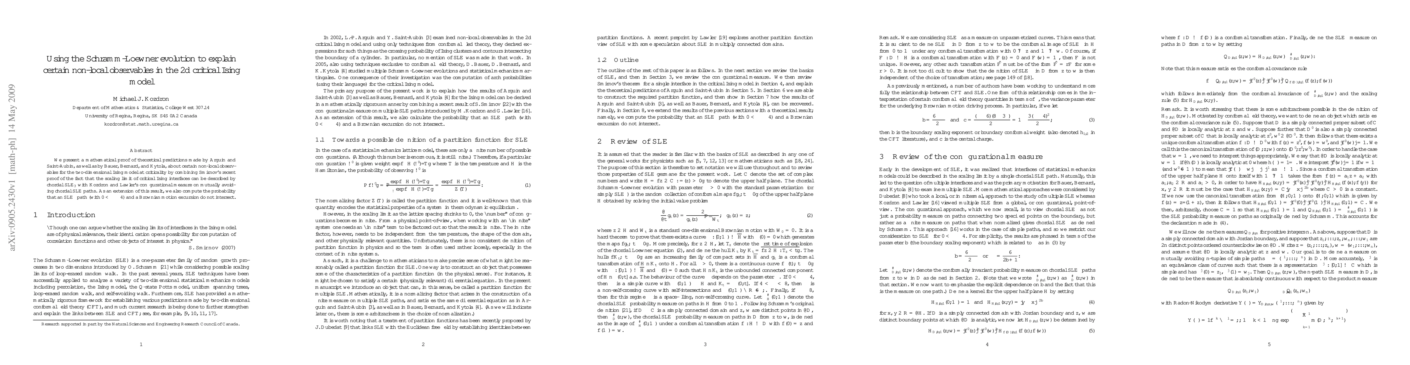 We present a mathematical proof of theoretical predictions made by Arguin and Saint-Aubin, as well as by Bauer, Bernard, and Kytola, about certain non-local observables for the two-dimensional Ising model at criticality by combining Smirnov's recent proof of the fact that the scaling limit of critical Ising interfaces can be described by chordal SLE(3) with Kozdron and Lawler's configurational measure on mutually avoiding chordal SLE paths. As an extension of this result, we also compute the probability that an SLE(k) path, k in (0,4], and a Brownian motion excursion do not intersect.