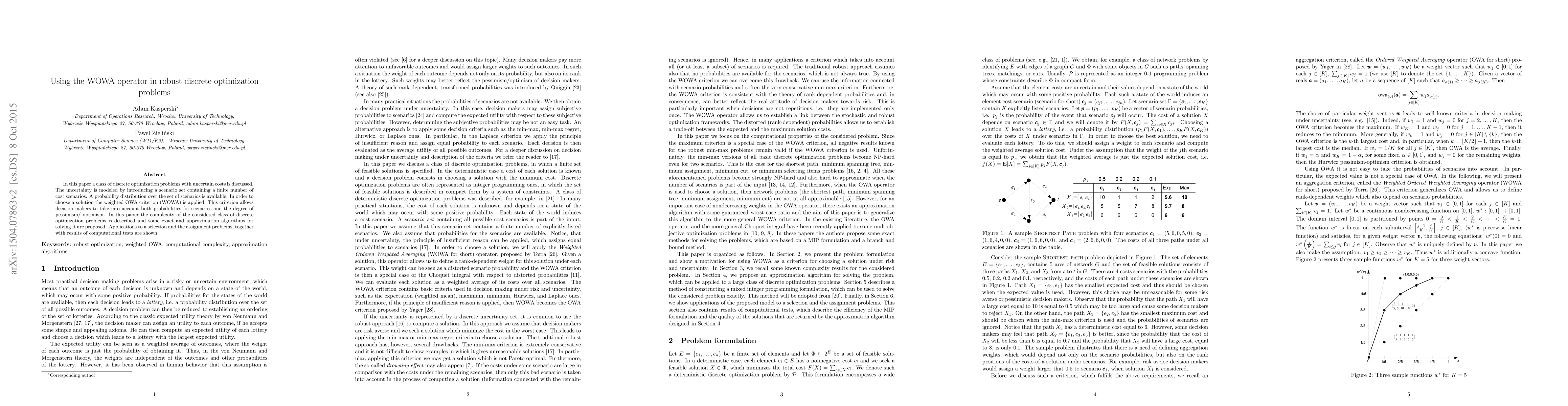 This paper proposes using the weighted OWA (WOWA) criterion to solve discrete optimization problems with uncertain costs, taking into account both probability of scenarios and degree of pessimism/optimism.