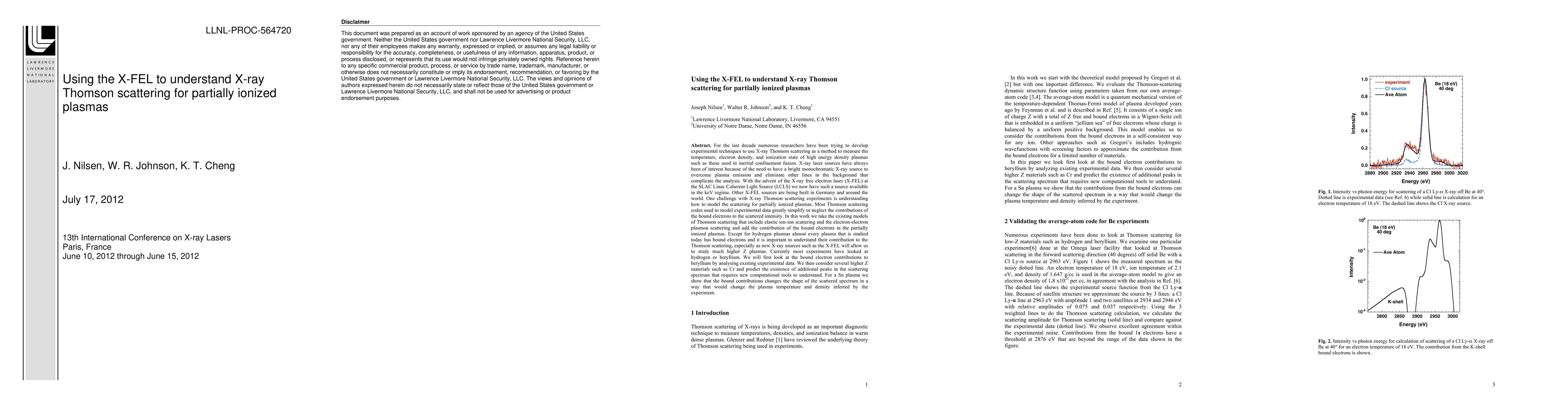 For the last decade numerous researchers have been trying to develop experimental techniques to use X-ray Thomson scattering as a method to measure the temperature, electron density, and ionization state of high energy density plasmas such as those used in inertial confinement fusion. With the advent of the X-ray free electron laser (X-FEL) at the SLAC Linac Coherent Light Source (LCLS) we now have such a source available in the keV regime. One challenge with X-ray Thomson scattering experiments is understanding how to model the scattering for partially ionized plasmas. Most Thomson scattering codes used to model experimental data greatly simplify or neglect the contributions of the bound electrons to the scattered intensity. In this work we take the existing models of Thomson scattering that include elastic ion-ion scattering and the electron-electron plasmon scattering and add the contribution of the bound electrons in the partially ionized plasmas. Except for hydrogen plasmas almost every plasma that is studied today has bound electrons and it is important to understand their contribution to the Thomson scattering, especially as new X-ray sources such as the X-FEL will allow us to study much higher Z plasmas. Currently most experiments have looked at hydrogen or beryllium. We will first look at the bound electron contributions to beryllium by analysing existing experimental data. We then consider several higher Z materials such as Cr and predict the existence of additional peaks in the scattering spectrum that requires new computational tools to understand. For a Sn plasma we show that the bound contributions changes the shape of the scattered spectrum in a way that would change the plasma temperature and density inferred by the experiment.