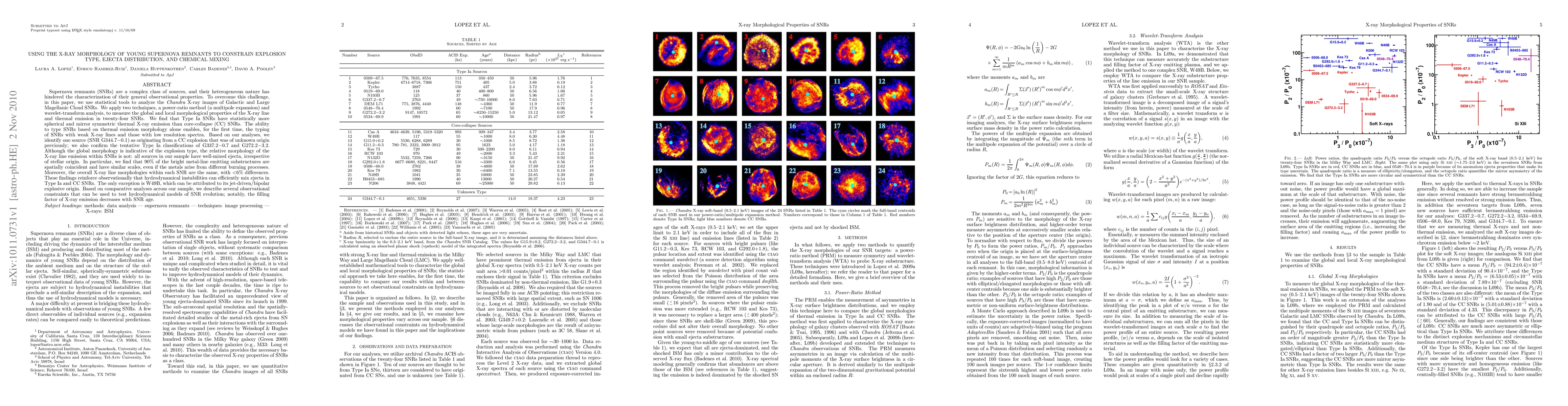 This study uses X-ray morphologies of young supernova remnants to distinguish between Type Ia and core-collapse explosions, finding Type Ia SNRs exhibit more spherical and symmetric thermal X-ray emissions. It also reveals that hydrodynamical instabilities efficiently mix ejecta in both types, with notable exceptions like W49B.