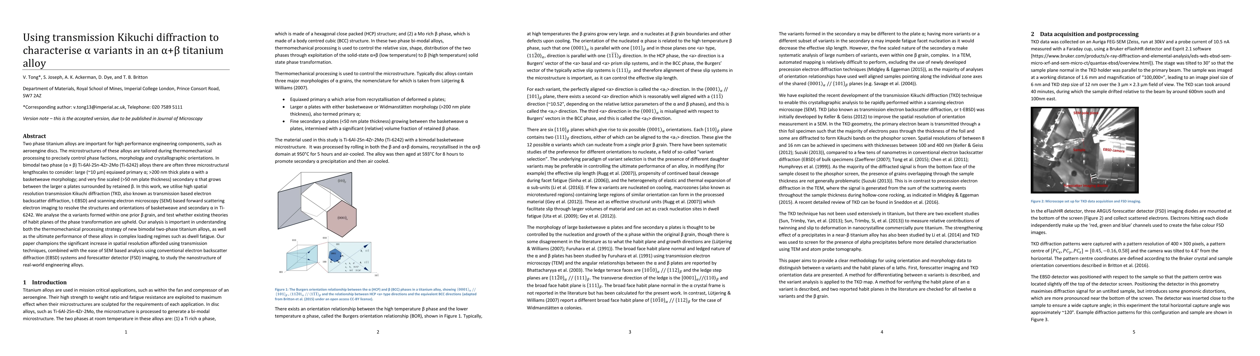 This paper uses high-resolution transmission Kikuchi diffraction (TKD) to characterize the microstructures of different {\alpha} variants in Ti-6242 titanium alloy, focusing on the basketweave and secondary {\alpha} phases. The study aims to understand the phase transformation habit planes and the implications for thermomechanical processing and performance in complex loading conditions.