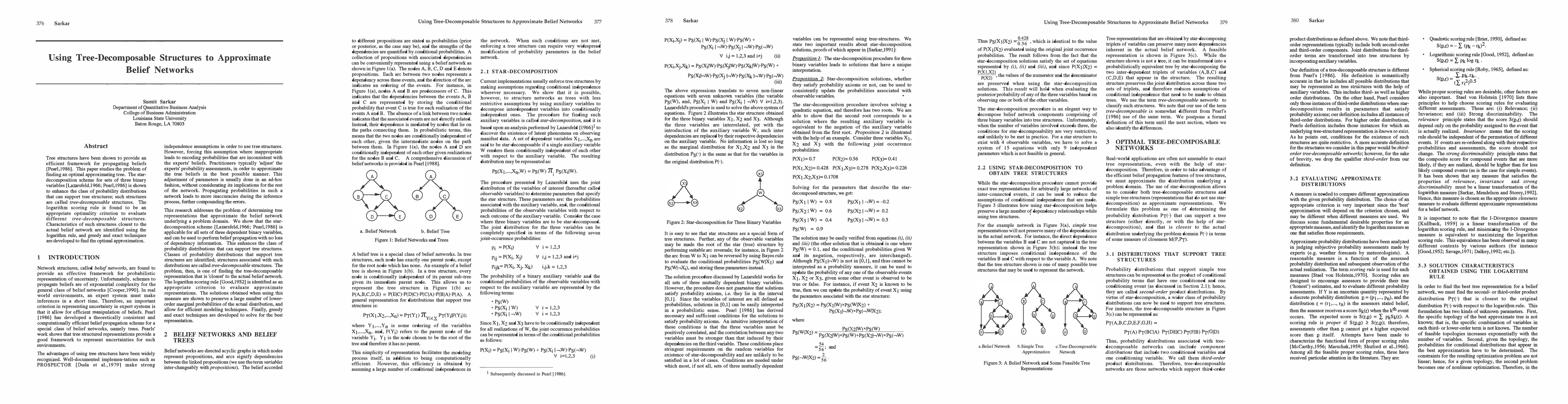 This paper explores the use of tree-decomposable structures to approximate belief networks efficiently. It employs the star decomposition scheme to enhance the class of probability distributions that support tree structures, and uses the logarithm scoring rule to identify the optimal approximating tree.