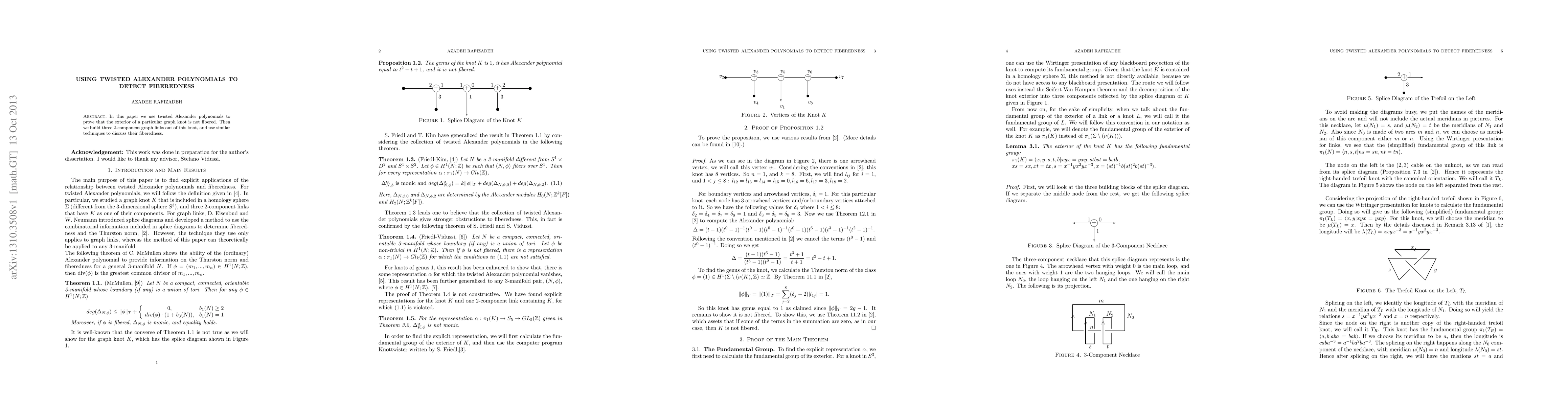 This paper demonstrates the use of twisted Alexander polynomials to show that the exterior of a specific graph knot is not fibered, and applies similar methods to analyze the fiberedness of three 2-component graph links constructed from this knot.