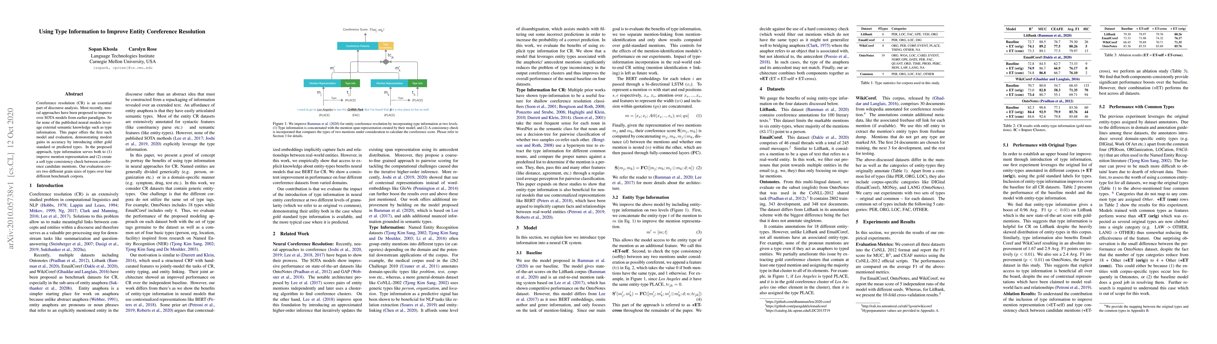 This paper introduces a neural model that leverages type information to enhance entity coreference resolution, achieving modest accuracy improvements. The model uses type information to refine mention representations and enforce soft type consistency checks between coreference candidates.