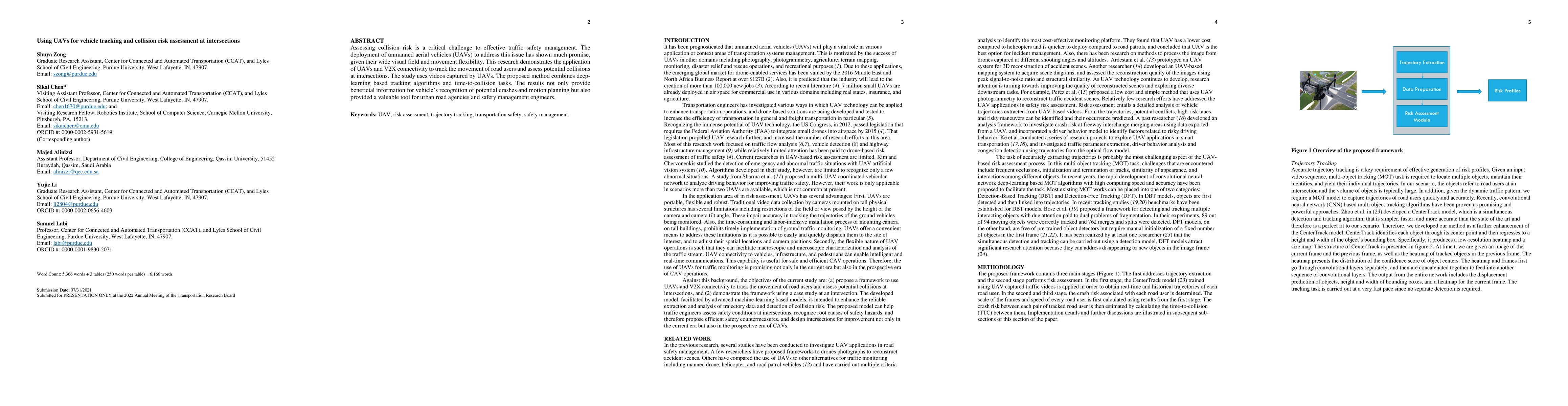 Assessing collision risk is a critical challenge to effective traffic safety management. The deployment of unmanned aerial vehicles (UAVs) to address this issue has shown much promise, given their wide visual field and movement flexibility. This research demonstrates the application of UAVs and V2X connectivity to track the movement of road users and assess potential collisions at intersections. The study uses videos captured by UAVs. The proposed method combines deep-learning based tracking algorithms and time-to-collision tasks. The results not only provide beneficial information for vehicle's recognition of potential crashes and motion planning but also provided a valuable tool for urban road agencies and safety management engineers.