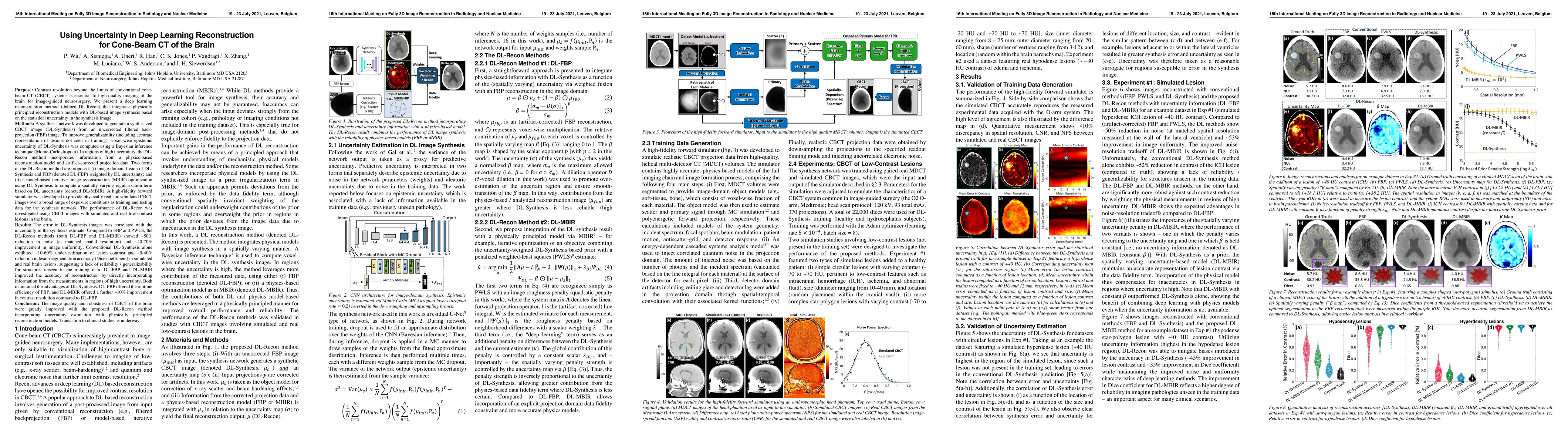 This paper proposes a deep learning reconstruction method (DL-Recon) for cone-beam CT brain imaging that combines deep learning with physically-based reconstruction models to enhance contrast resolution. The method uses uncertainty estimates to improve generalizability, showing significant reductions in noise and improvements in image uniformity compared to conventional methods.