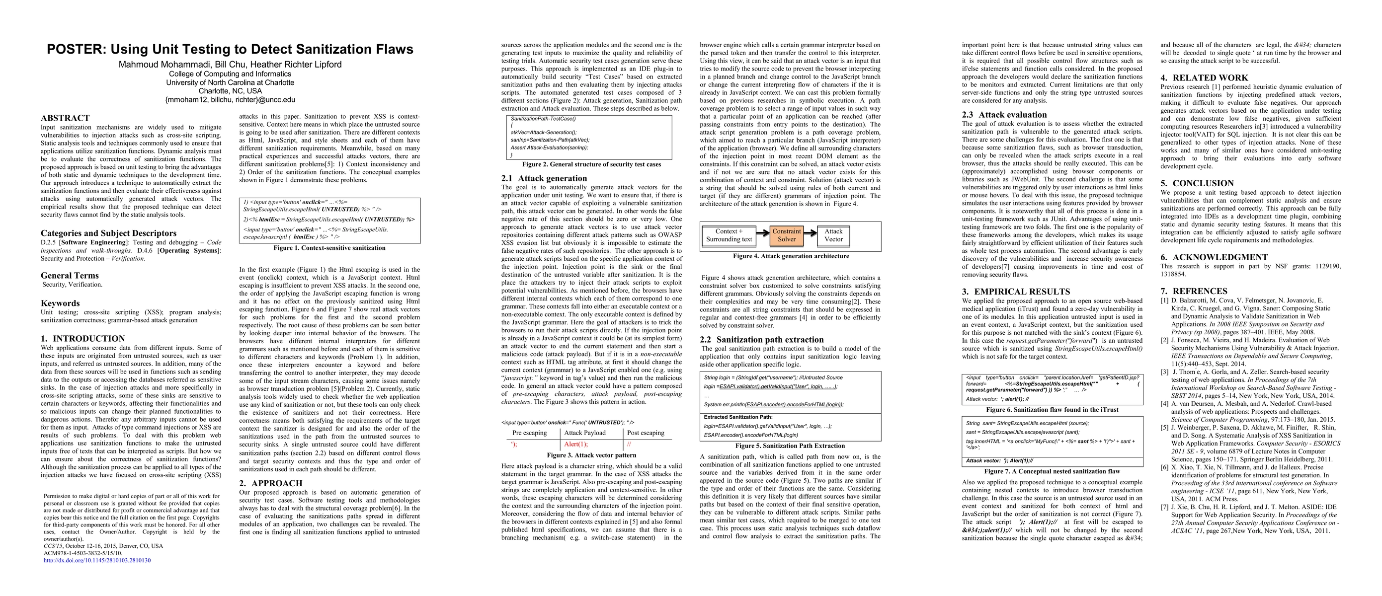 This paper proposes a unit testing approach to detect sanitization flaws in applications, combining static and dynamic analysis techniques. It automates the extraction of sanitization functions and evaluates them against generated attack vectors, demonstrating effectiveness in finding security flaws missed by static analysis tools.