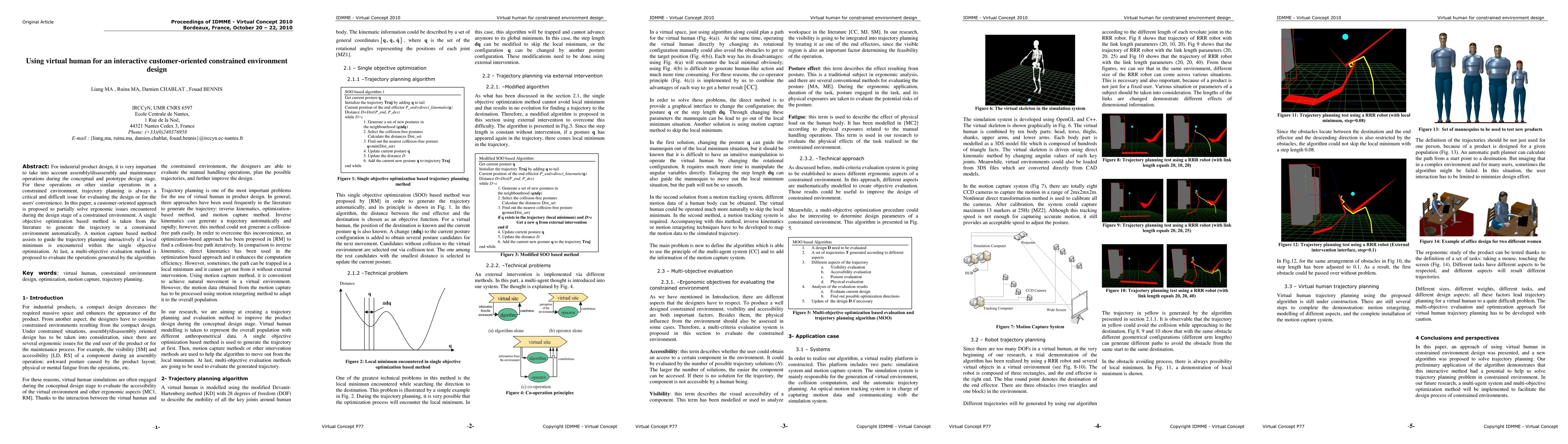Researchers proposed a customer-oriented approach to design industrial product layouts with assembly/disassembly operations, using virtual humans for interactive trajectory planning and multi-objective evaluation.
