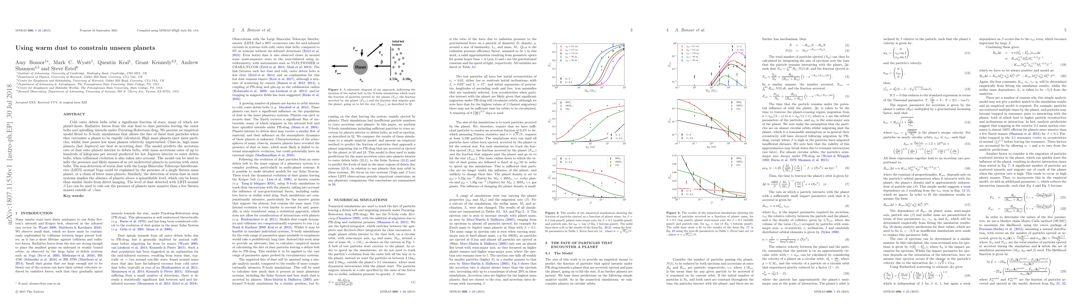 This paper presents an empirical model to predict dust accretion rates onto planets within debris belts, showing that hot Jupiters can accrete significant dust. The model infers unseen planets' presence and masses by analyzing warm dust detection, suggesting that the absence of warm dust around Vega hints at a Saturn-mass planet or a chain of lower mass planets.