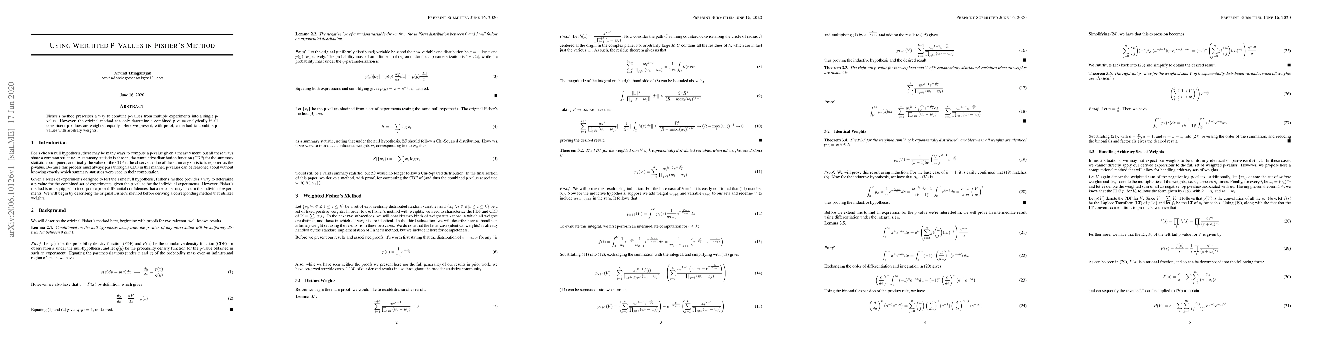 Researchers developed a new method to combine p-values with arbitrary weights using Fisher's method, allowing for more accurate statistical analysis in experiments.