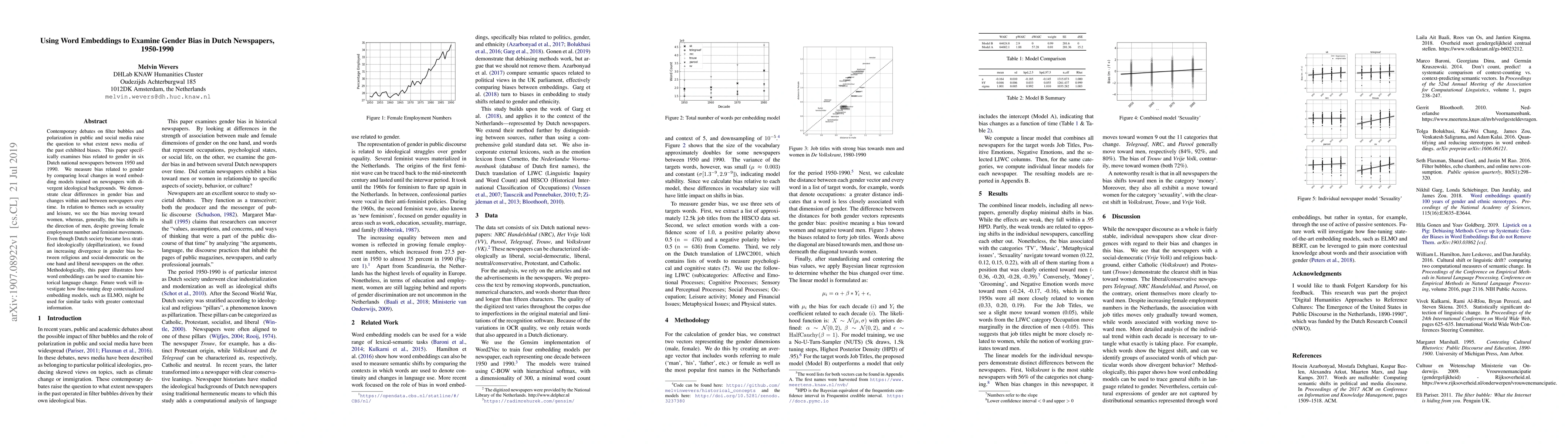 This paper uses word embeddings to analyze gender bias in six Dutch newspapers from 1950 to 1990, revealing shifts in bias despite societal changes, with increasing divergence in gender bias between ideological newspapers. The study demonstrates the utility of word embeddings in examining historical language change.