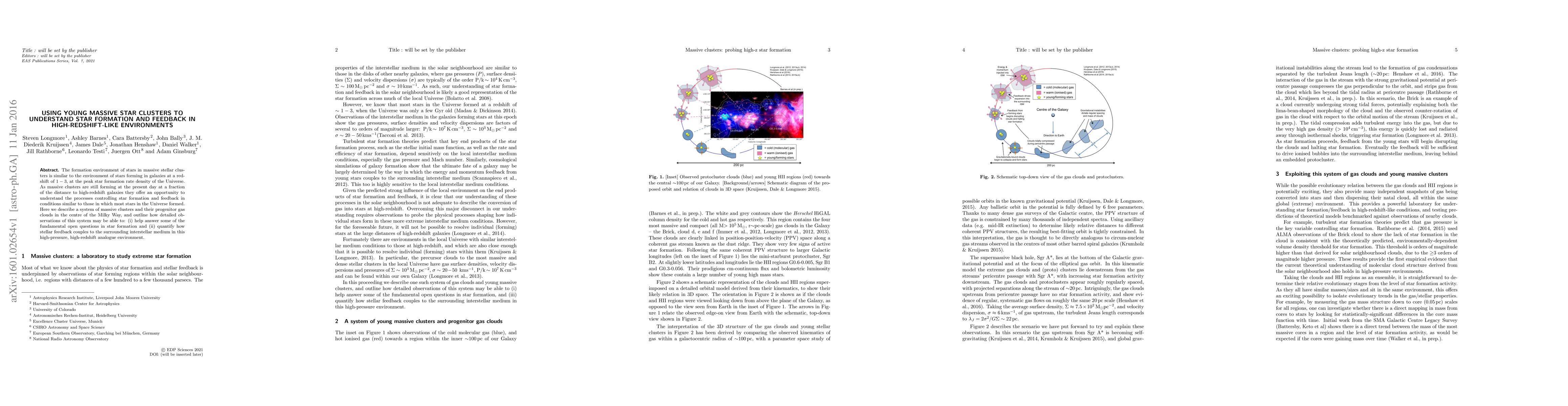 The formation environment of stars in massive stellar clusters is similar to the environment of stars forming in galaxies at a redshift of 1 - 3, at the peak star formation rate density of the Universe. As massive clusters are still forming at the present day at a fraction of the distance to high-redshift galaxies they offer an opportunity to understand the processes controlling star formation and feedback in conditions similar to those in which most stars in the Universe formed. Here we describe a system of massive clusters and their progenitor gas clouds in the centre of the Milky Way, and outline how detailed observations of this system may be able to: (i) help answer some of the fundamental open questions in star formation and (ii) quantify how stellar feedback couples to the surrounding interstellar medium in this high-pressure, high-redshift analogue environment.