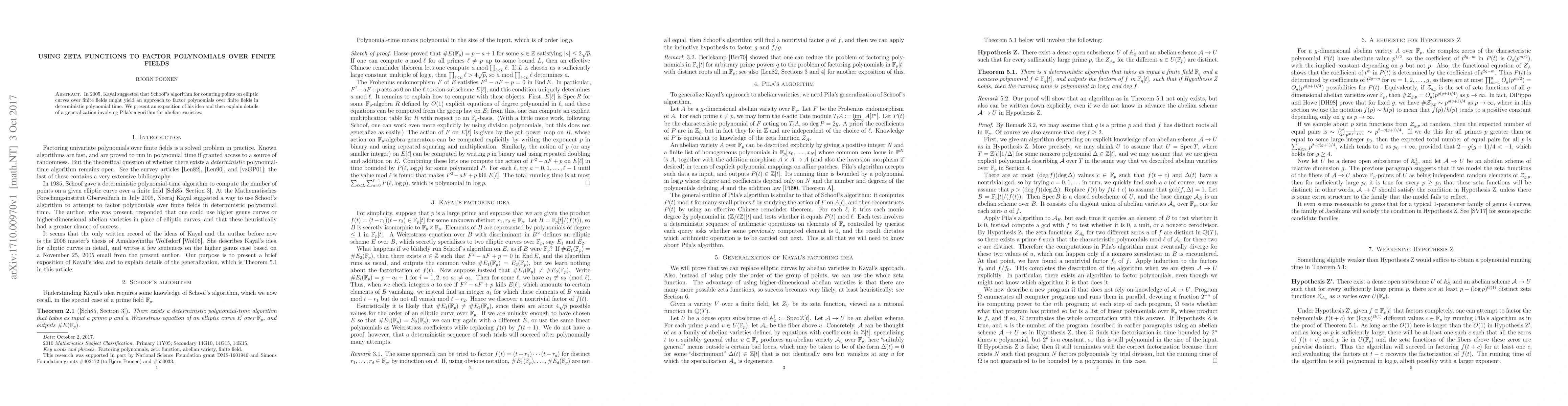 In 2005, Kayal suggested that Schoof's algorithm for counting points on elliptic curves over finite fields might yield an approach to factor polynomials over finite fields in deterministic polynomial time. We present an exposition of his idea and then explain details of a generalization involving Pila's algorithm for abelian varieties.
