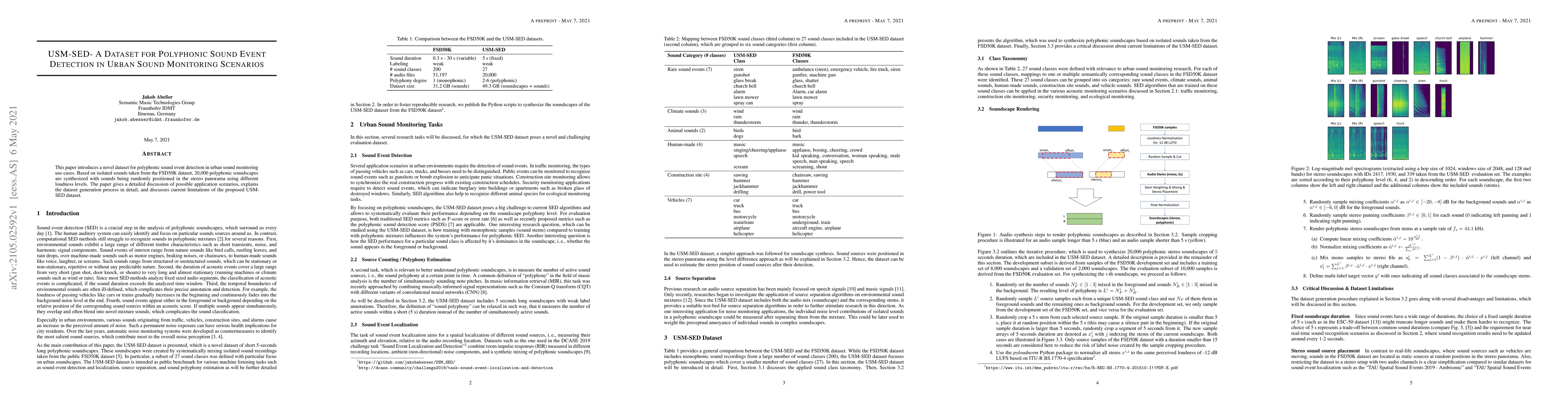Summary: The paper introduces a new dataset, USM-SED, for polyphonic sound event detection in urban environments, comprising 20,000 synthesized soundscapes. It details the dataset's generation process and discusses its potential applications and limitations.