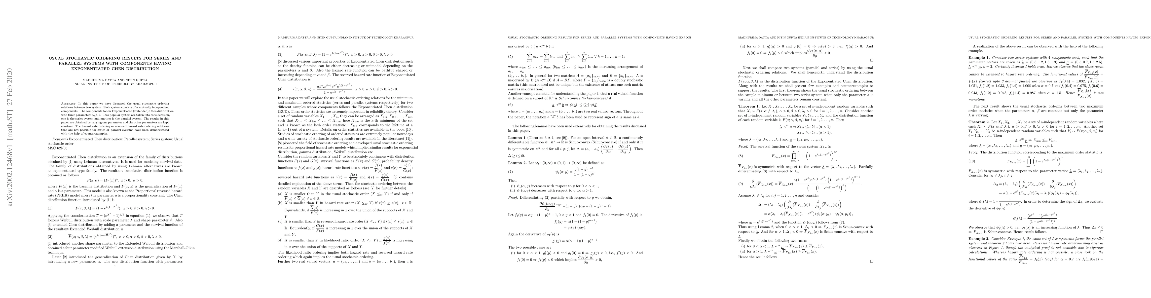This paper investigates usual stochastic ordering relations between series and parallel systems with components following the Exponentiated Chen distribution. It demonstrates hazard rate and reversed hazard rate orderings through counterexamples, highlighting the unique ordering properties of these systems.